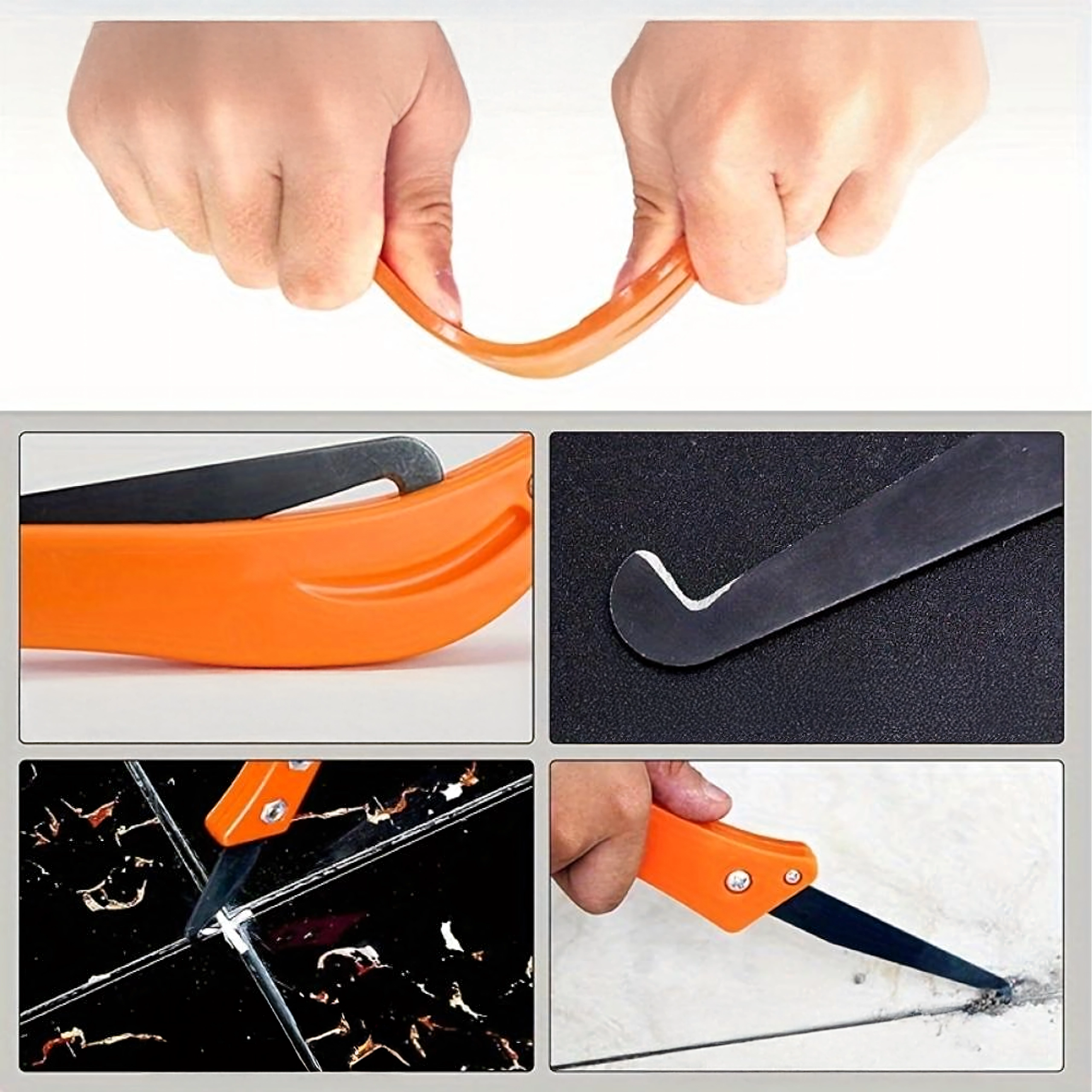 A hajlított, vékony él könnyedén befér a keskeny fugákba a csempék között, és alaposan eltávolítja a régi fugázóanyagot, a szilikonmaradványokat és a lerakódott szennyeződést.