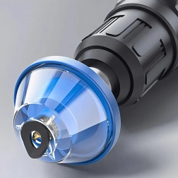 A transzparens burkolat lehetővé teszi a felfogott por mennyiségének követését és a fúró pontos vezetését.