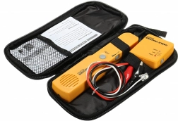 Professzionális kábelkereső és kábelteszter a vezetékek gyors felkutatásához, a szakadásdiagnosztikához és az RJ11 telefonvonalak ellenőrzéséhez. A hanggenerátornak és az érzékeny szondának köszönhetően könnyen megtalálja a megfelelő kábelt a kötegekben, teszteli a folytonosságot, és feltárja a hibát – a szigetelés megsértése nélkül. A csomag része egy praktikus tok a biztonságos szállításhoz.