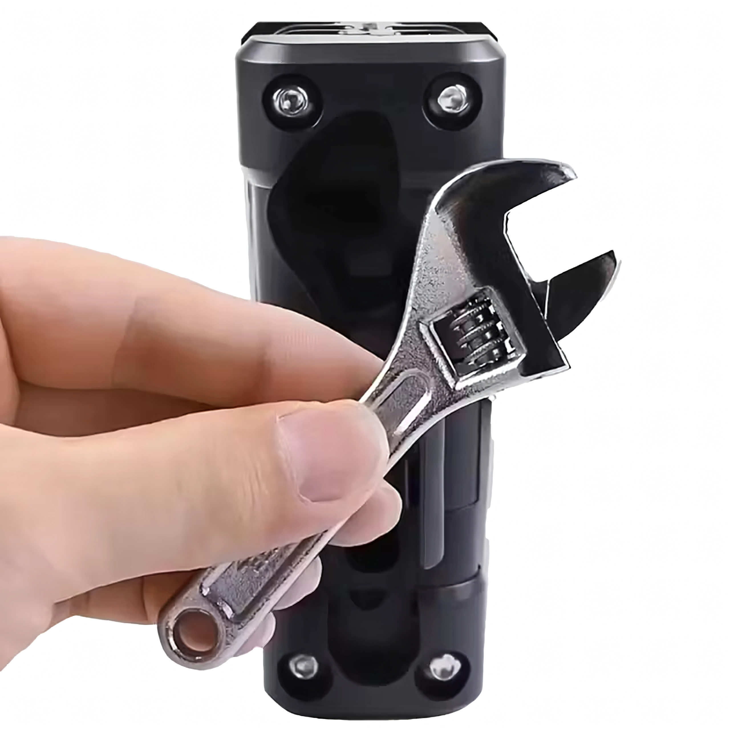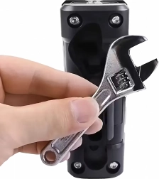 Az integrált állítható kulcs különféle anyák és csavarok méreteihez használható, további szerszámok nélkül.