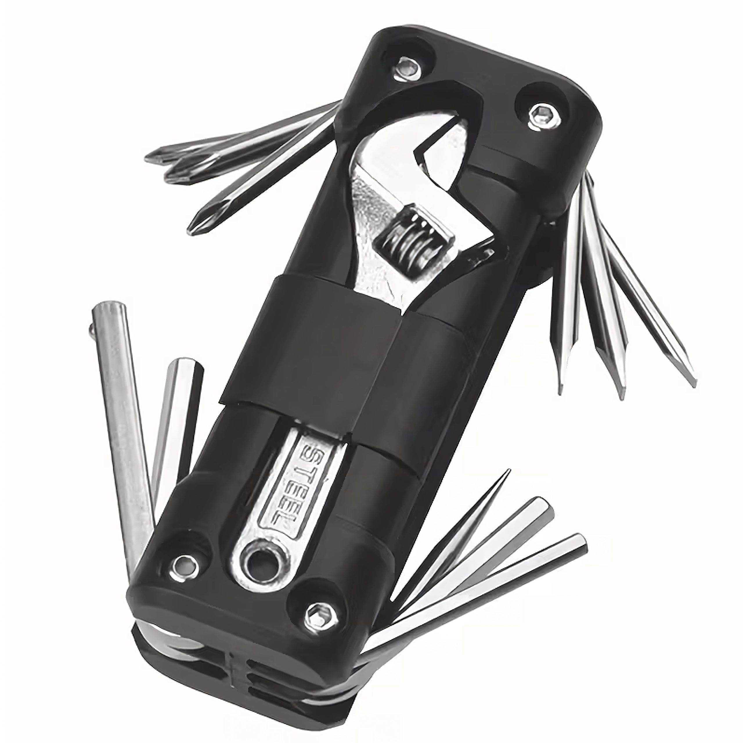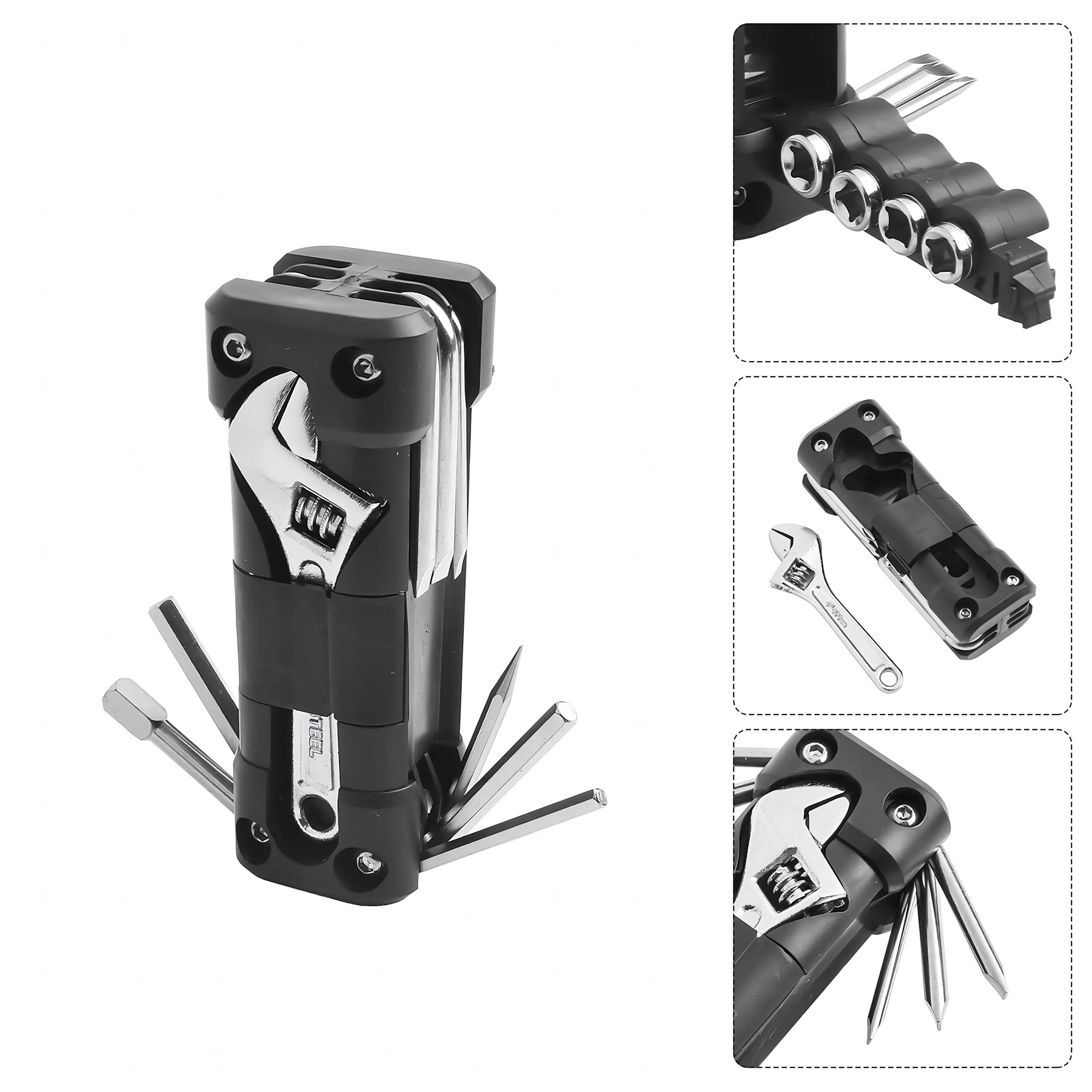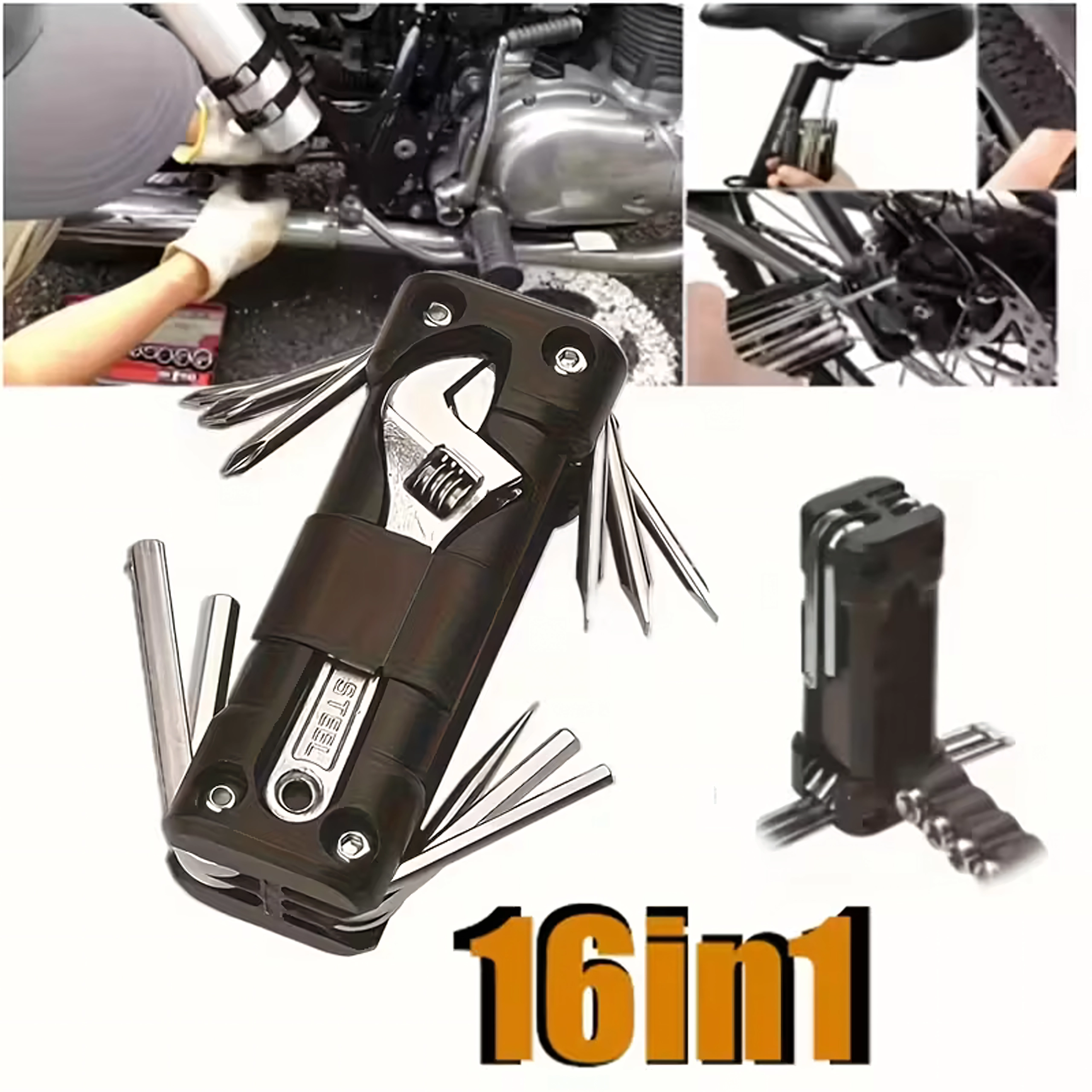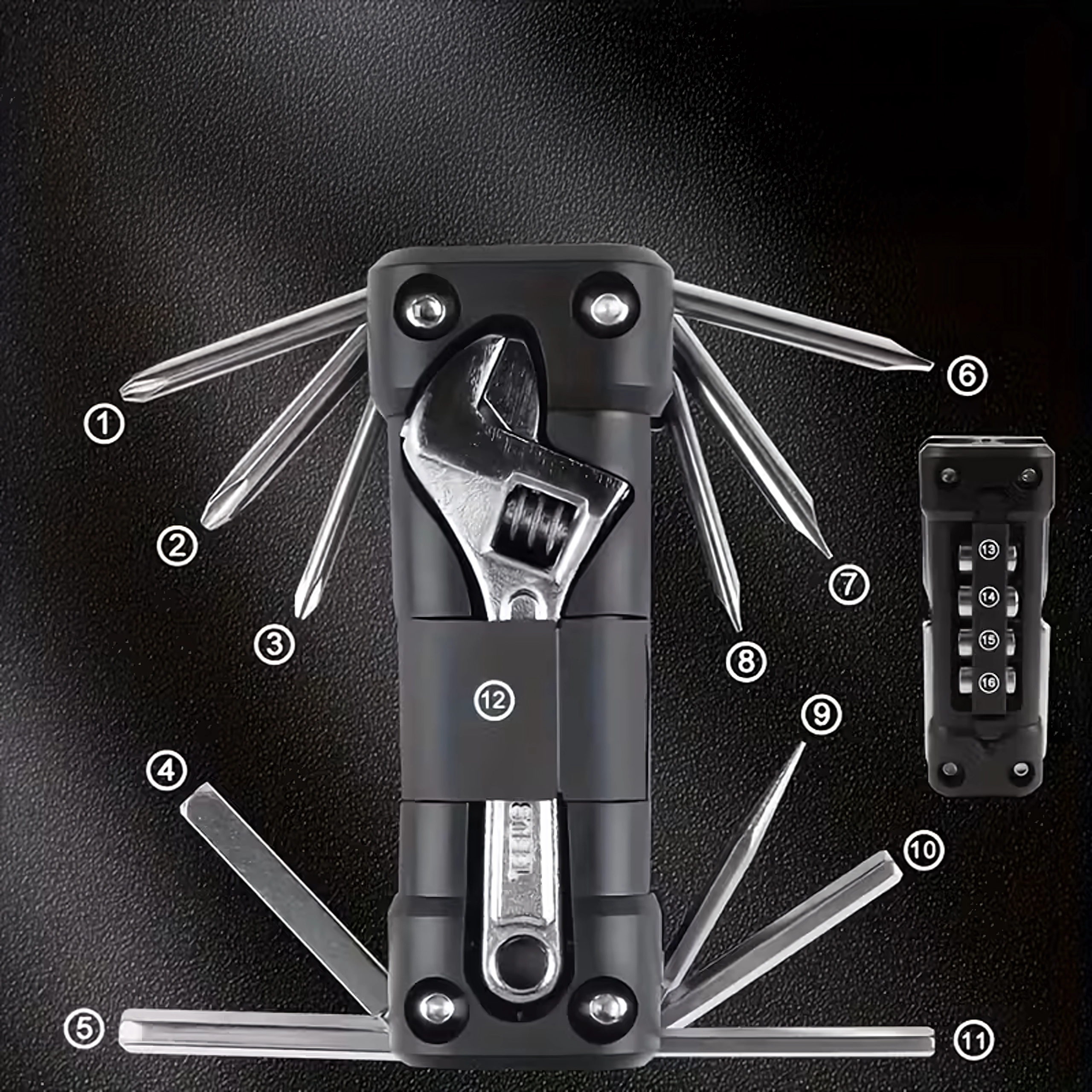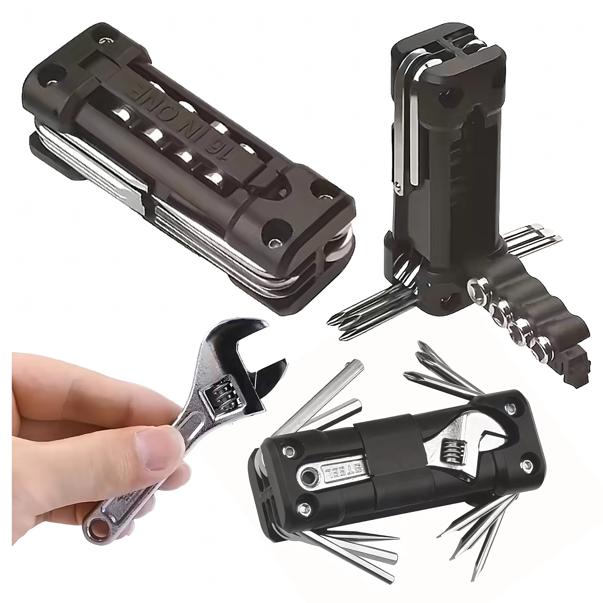 Az univerzális 13 az 1-ben multitool mindent biztosít, ami a csavarok meghúzásához és a gyors beállításokhoz kell úton vagy otthon. A robusztus fém szerszámok és az ergonomikus test biztos fogást és hosszú élettartamot nyújtanak. A összecsukható kialakításnak köszönhetően kényelmesen elfér a zsebben, nyeregtáskában vagy az autó rekeszében.