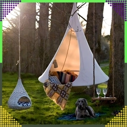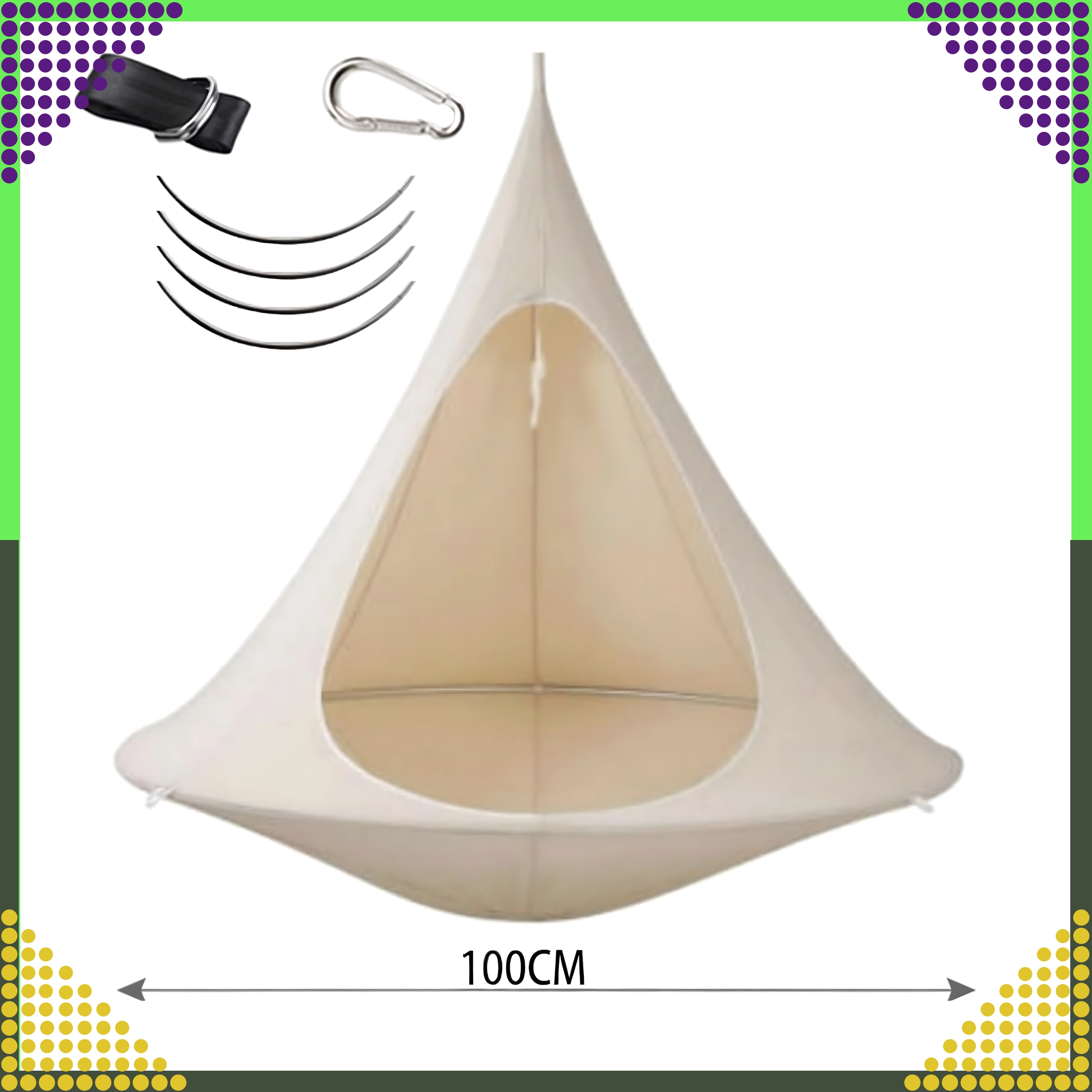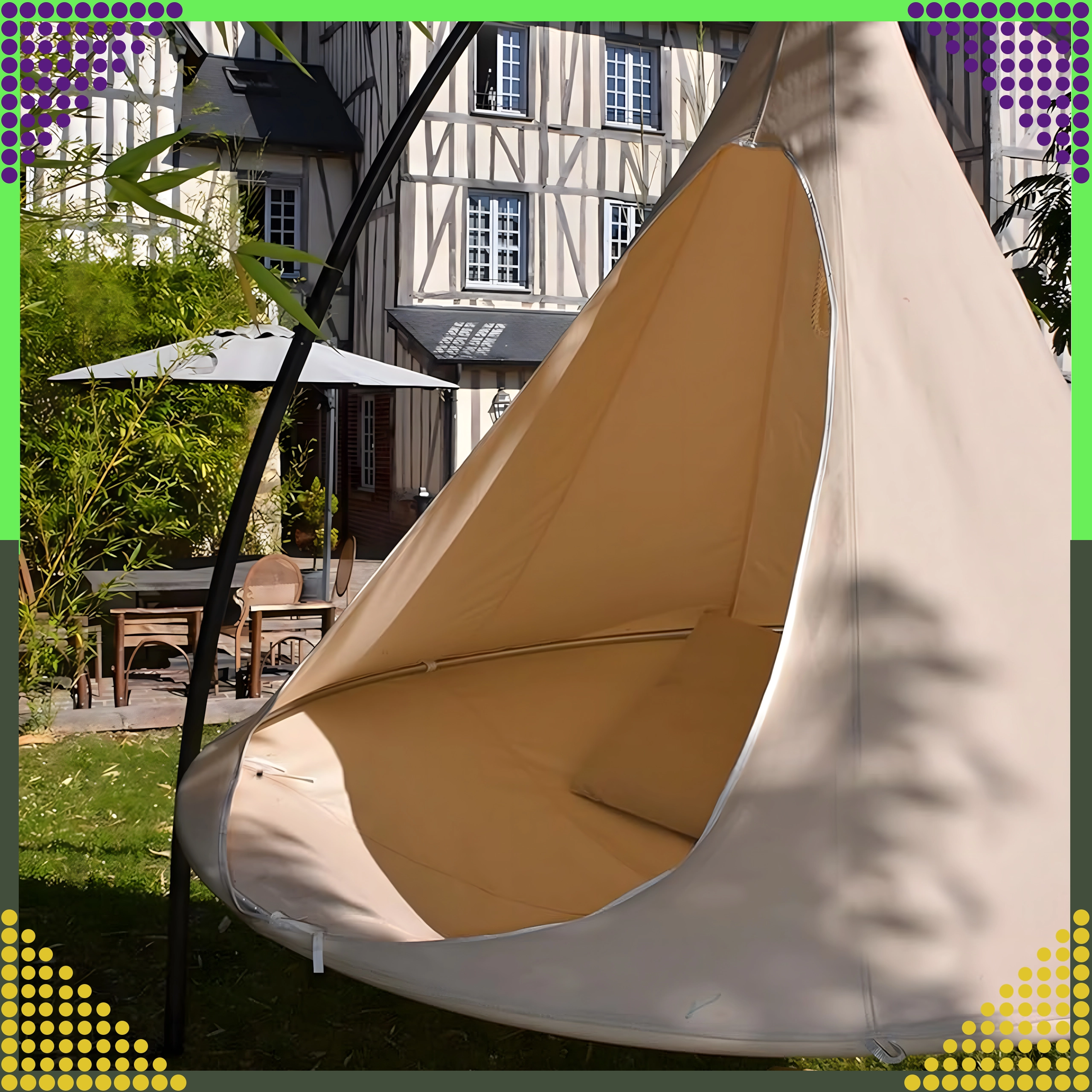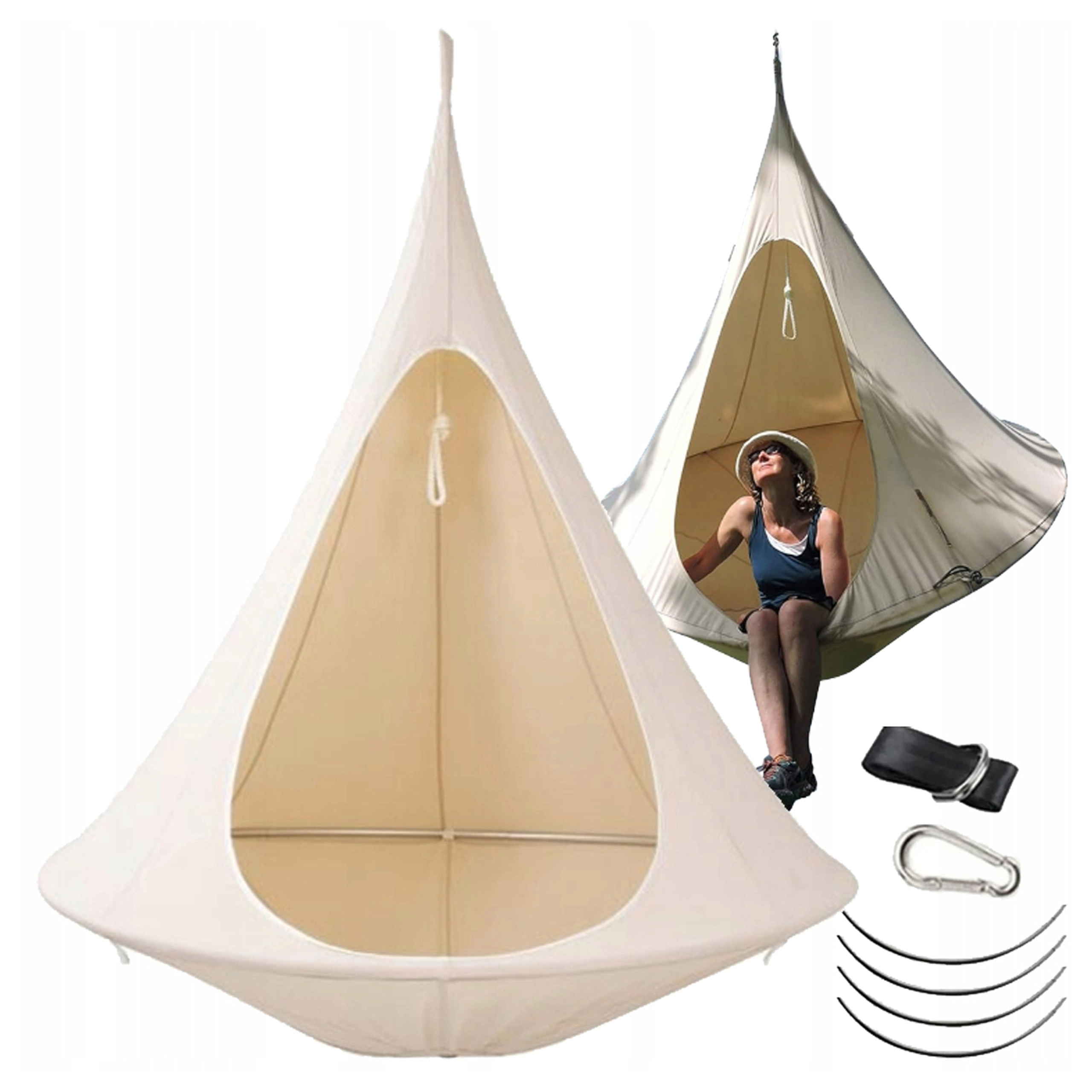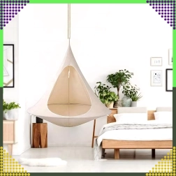 A kokon alakú függőágy kellemes, biztonságos és nyugodt menedéket teremt olvasáshoz, relaxáláshoz vagy délutáni szundikáláshoz. A légáteresztő anyagnak és az egypontos, tartós felfüggesztésnek köszönhetően gyerekszobába, nappaliba és a kertbe, fa alá is ideális. A bézs szín könnyen kombinálható bármilyen stílussal.