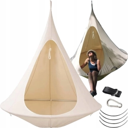 Élvezze a tökéletes pihenést a kokon típusú függőágyban, amely ötvözi a stílusos dizájnt, a masszív felépítést és a maximális kényelmet. Ez a meghitt „kokon” ideális a kertbe, teraszra, erkélyre és beltérbe is, és a 150 kg teherbírásnak köszönhetően gyerekeknek és felnőtteknek egyaránt örömet szerez. A légáteresztő anyag és a könnyű karbantartás egész évben remek relaxációs helyet biztosít.
