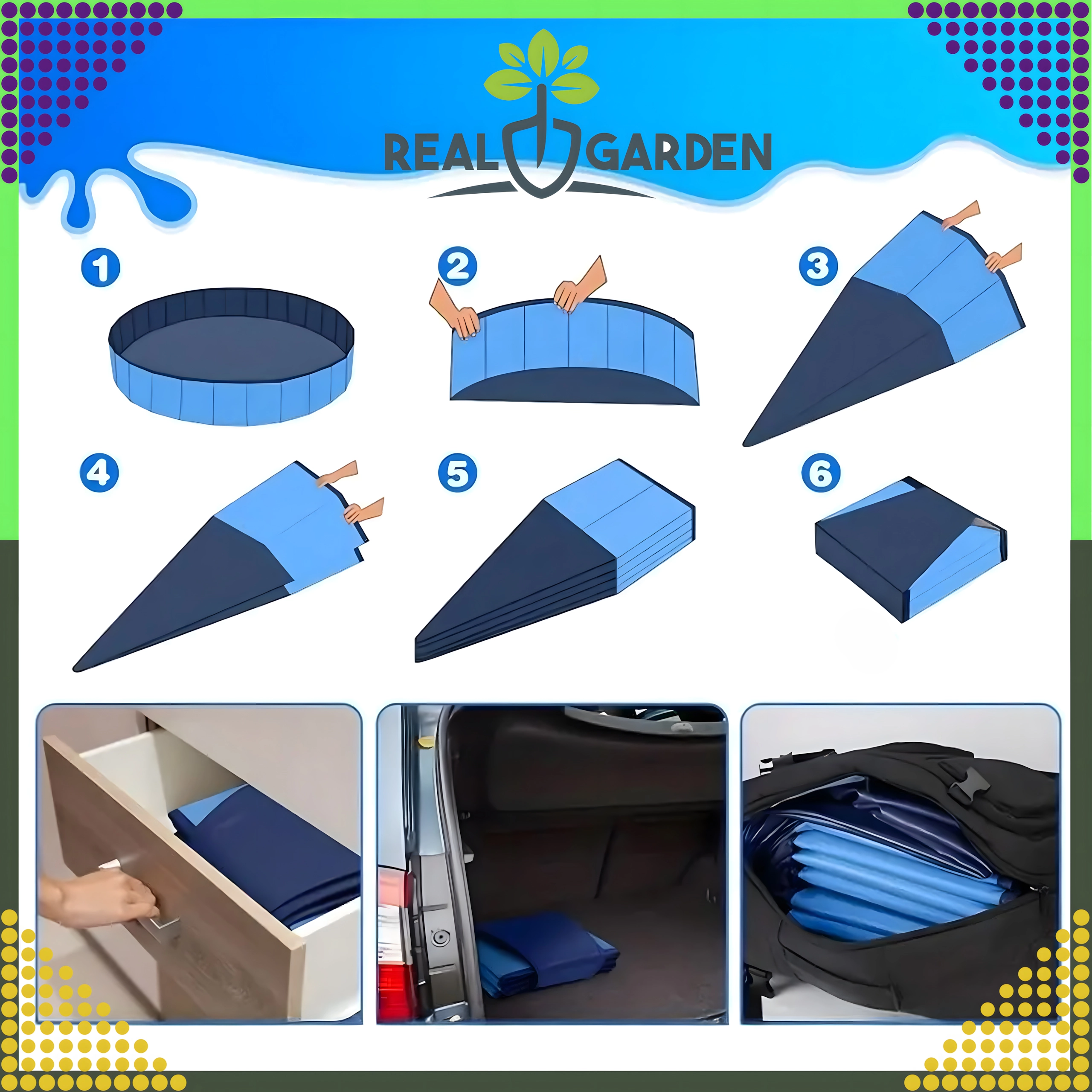 A praktikus kialakításnak köszönhetően a medence pillanatok alatt kinyitható és összecsukható, magával vihető nyaralásra, vagy könnyen áthelyezhető a kertben. Az integrált leeresztőszelep gyors és erőfeszítés nélküli vízleeresztést biztosít.