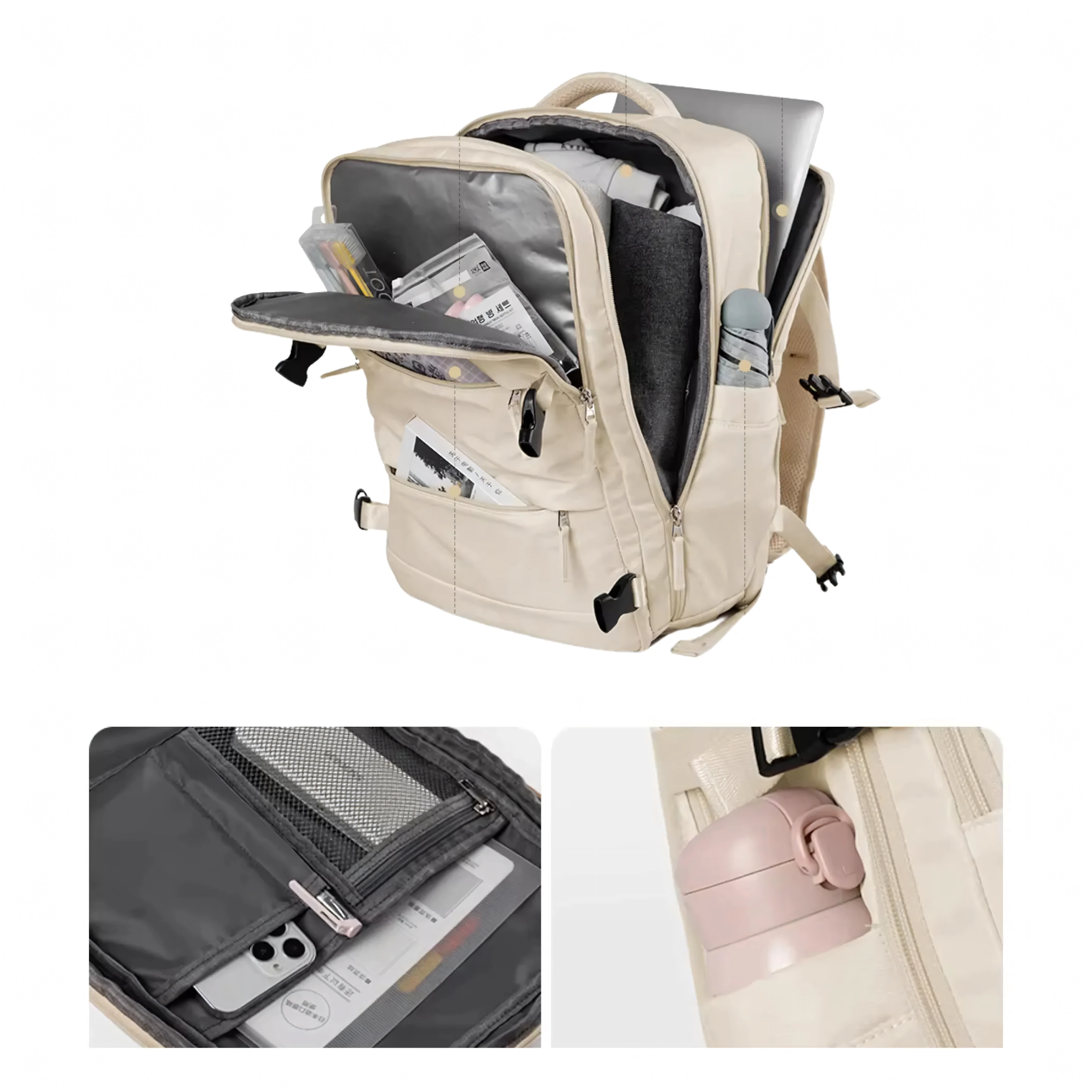Ez a sokoldalú kabin hátizsák a kényelmet, a funkcionalitást és a modern megjelenést egyesíti. A 46 × 30 × 20 cm-es méretnek köszönhetően a legtöbb fapados légitársasághoz megfelelő, és gond nélkül használható kézipoggyászként. A tartós, vízálló anyag minden időjárásban megvédi a holmikat, míg az átgondolt belső tagolás áttekinthető rendezettséget biztosít.