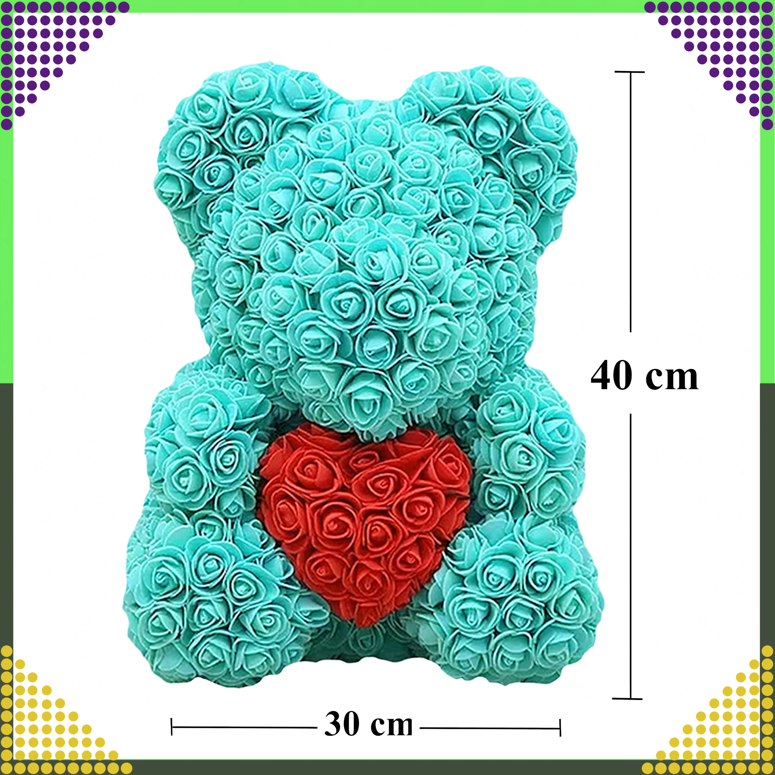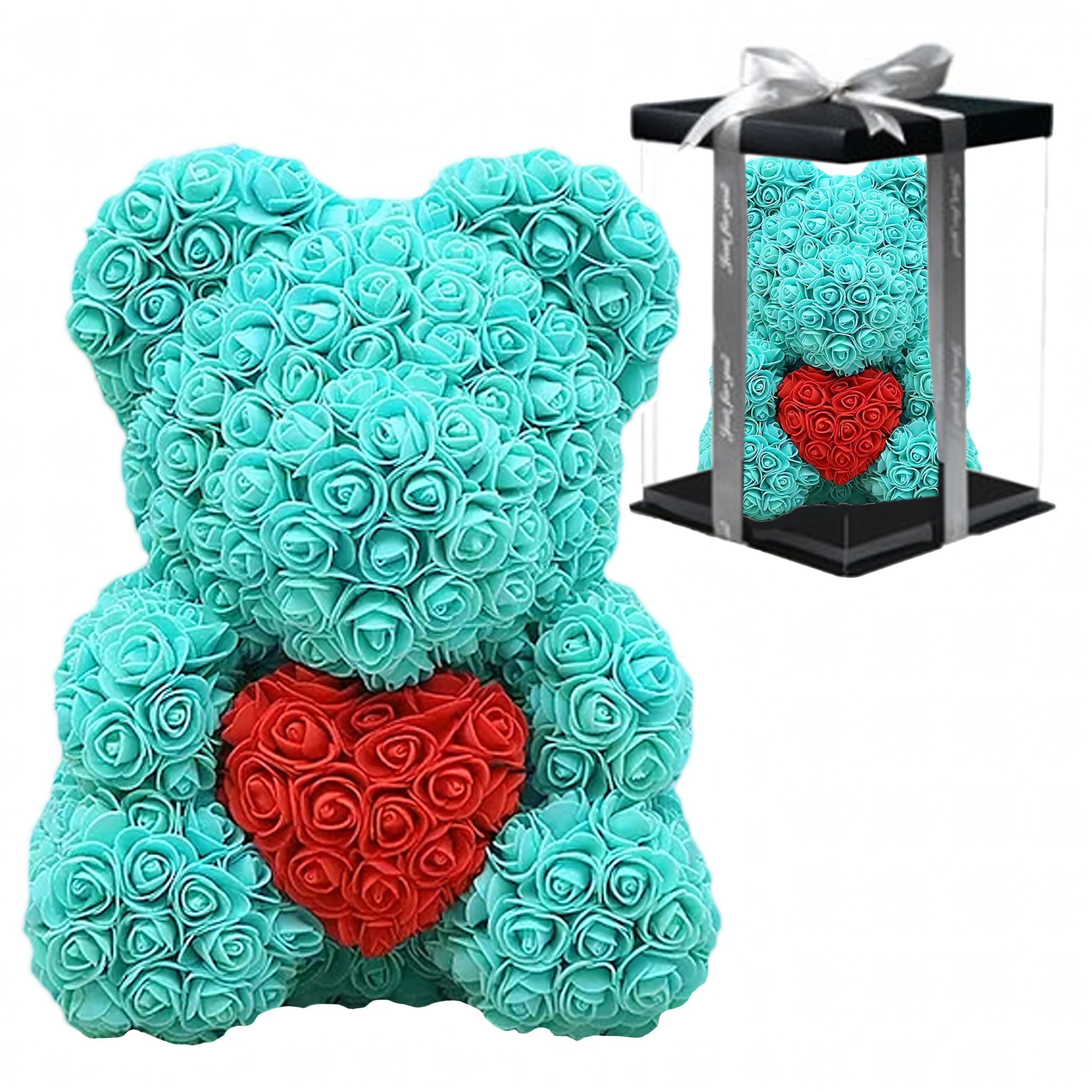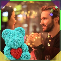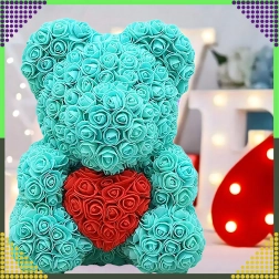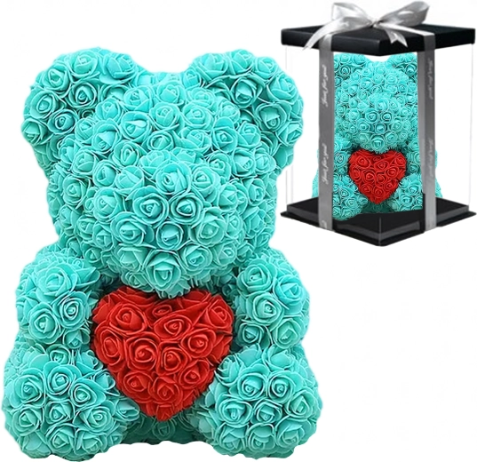 Az elegáns, 40 cm magas rózsamedve egy felejthetetlen, romantikus ajándék a párodnak, édesanyádnak vagy nagymamádnak. Finom, habrózsákból készül, amelyek soha nem hervadnak el, így tartós dekorációként és a szeretet szimbólumaként szolgál Valentin-napon és más különleges alkalmakon is.