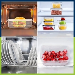 A patentzáras fedők szilikon tömítéssel védik az ételeket a kiszáradástól, és megakadályozzák a folyadékok kiömlését szállítás közben.