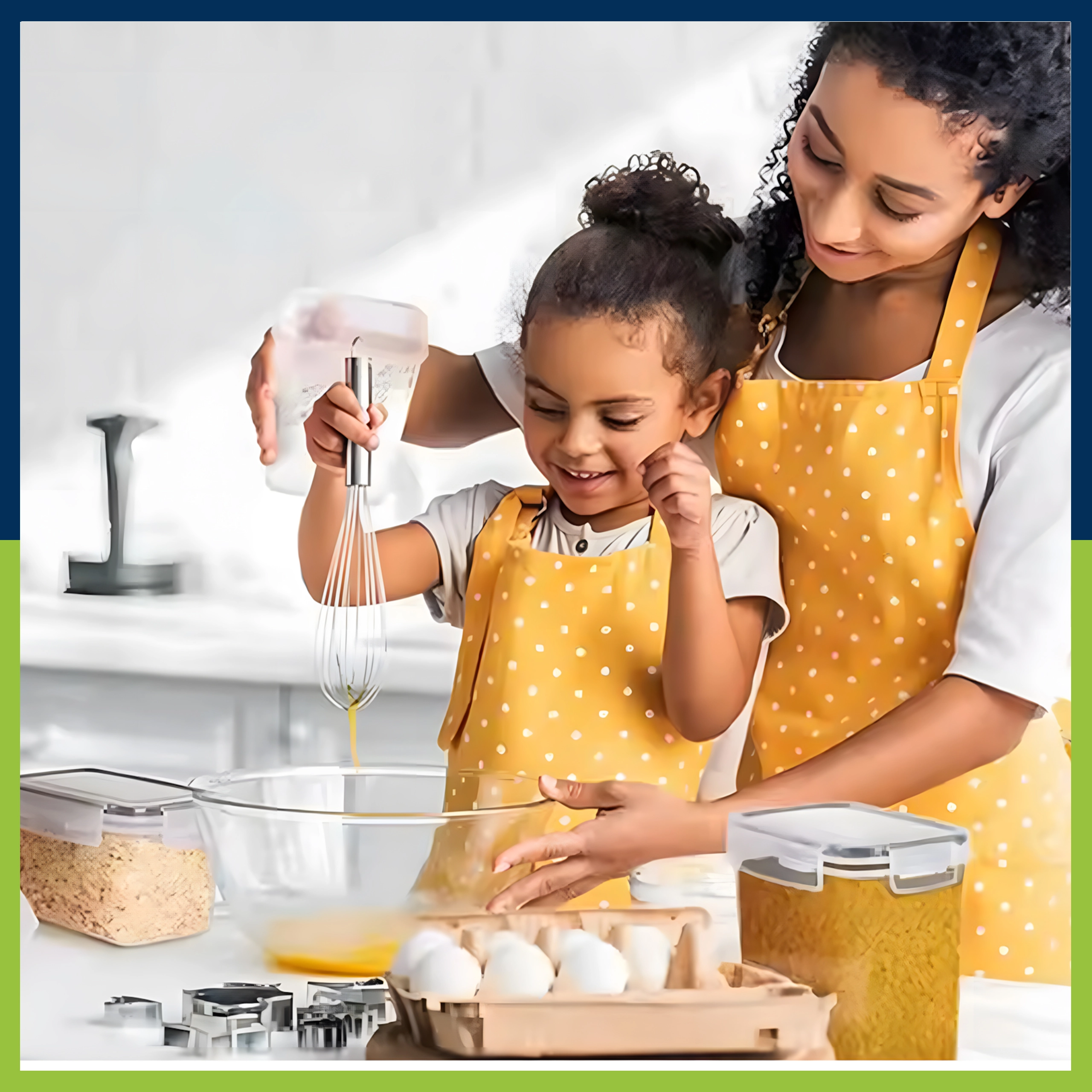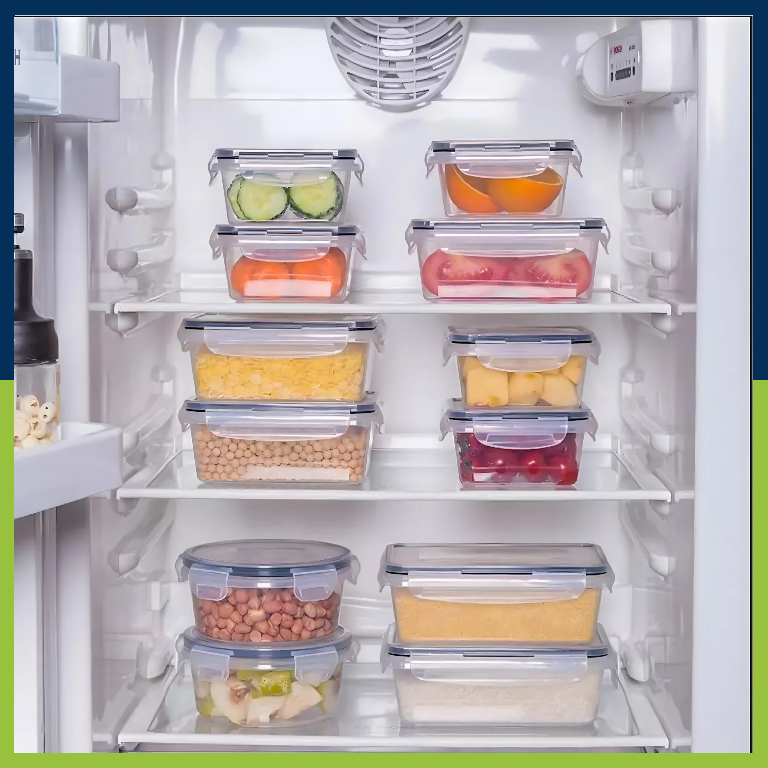 - Egymásra helyezhető készlet helytakarékos a hűtőben, fagyasztóban és kamrában