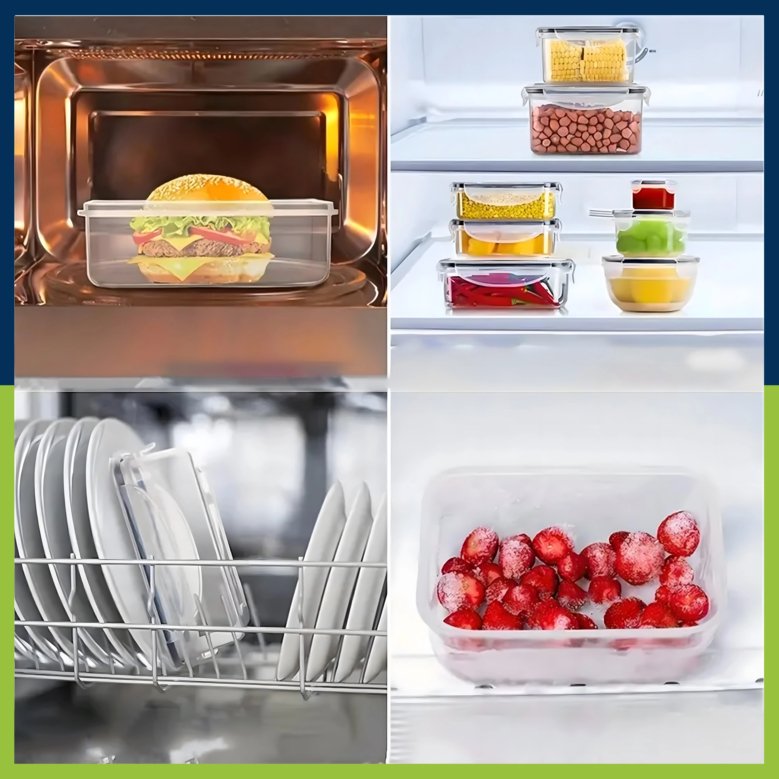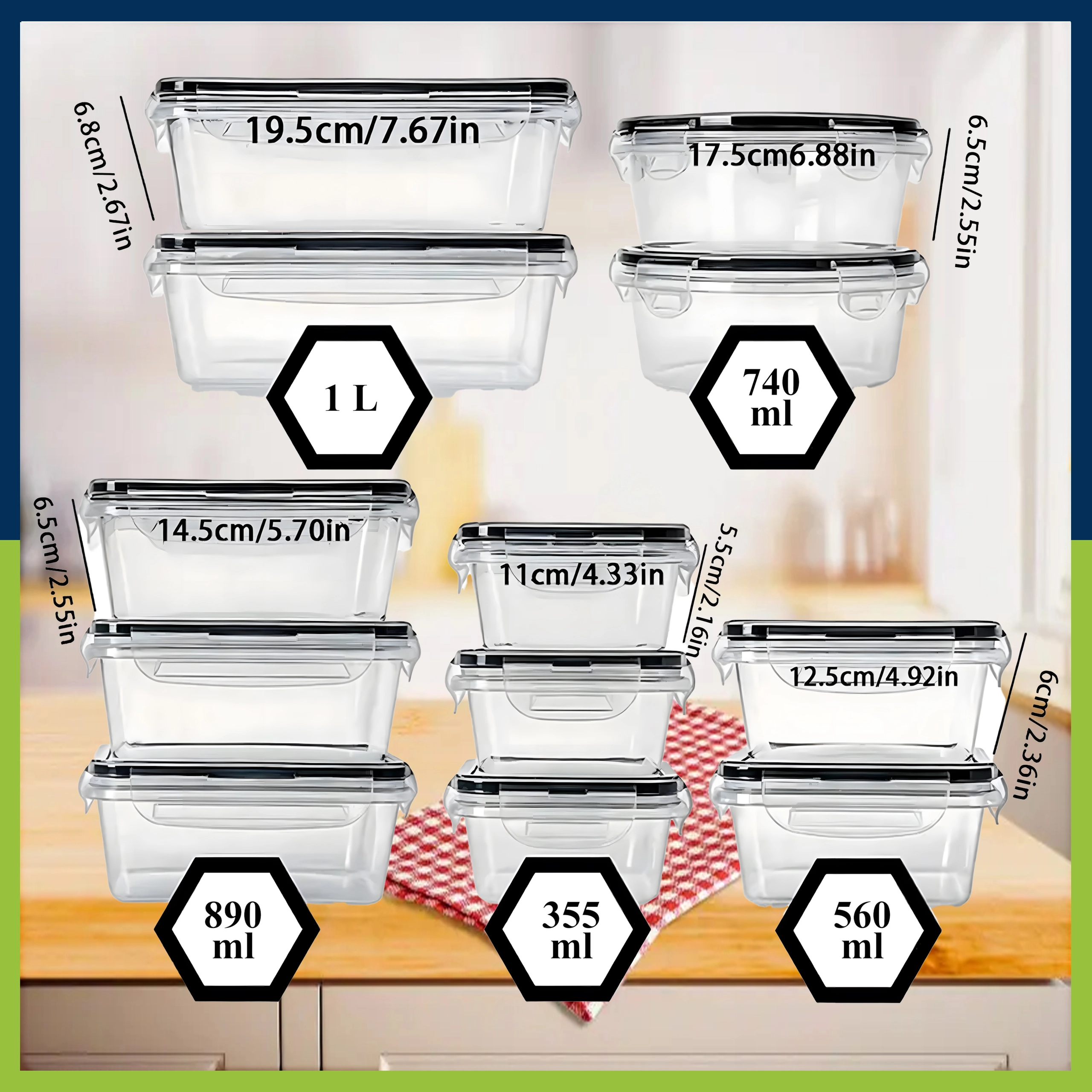 Ez a sokoldalú készlet kisebb és nagyobb edényeket tartalmaz uzsonnához, gyümölcshöz, zöldséghez, maradékokhoz és meal prephez. Az átlátszó falak megkönnyítik a tartalom gyors azonosítását, a masszív, reteszes fedők pedig megbízható tömítést biztosítanak a folyadékok és szagok kiszökése ellen.
