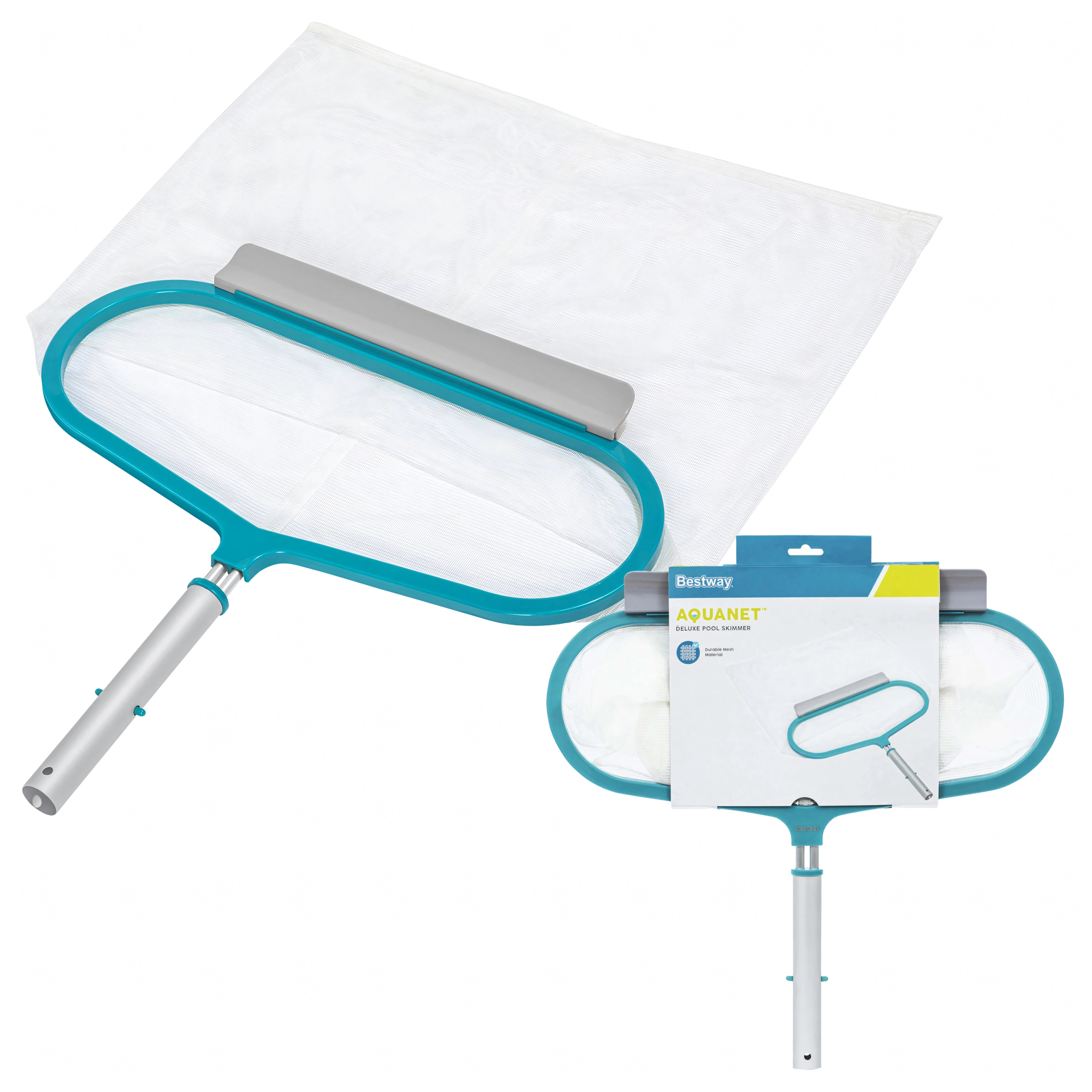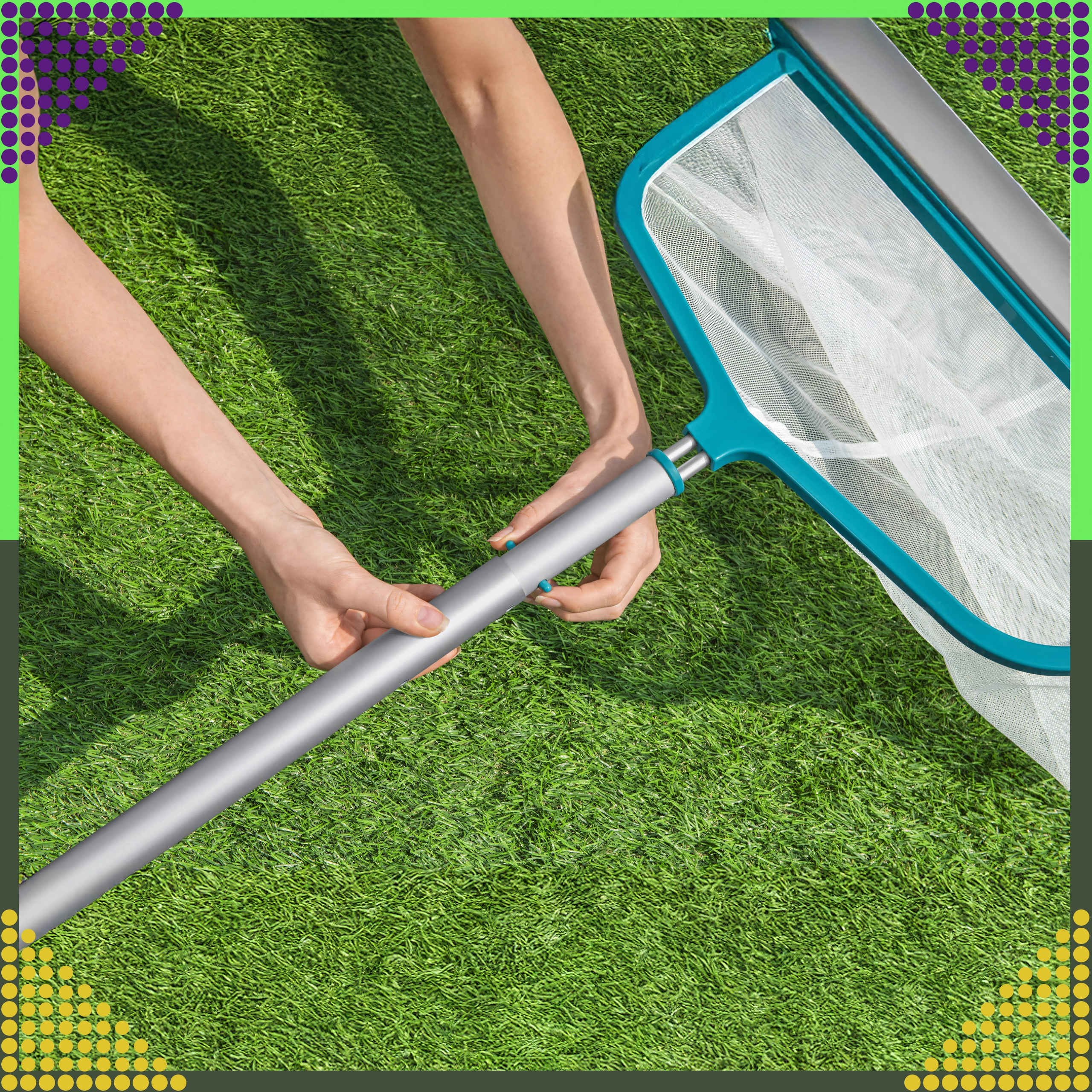 Tartsa a vizet kristálytisztán a minőségi Bestway AquaNet Deluxe medencehálóval. Az 50 × 48 × 2,8 cm-es méreteknek és a masszív alumínium keretnek köszönhetően gyorsan felfogja a leveleket és a finom szennyeződéseket. A strapabíró háló és a 30 mm-es teleszkópos rúd kompatibilitás kényelmes és hatékony tisztítást biztosít bármely medencéhez.