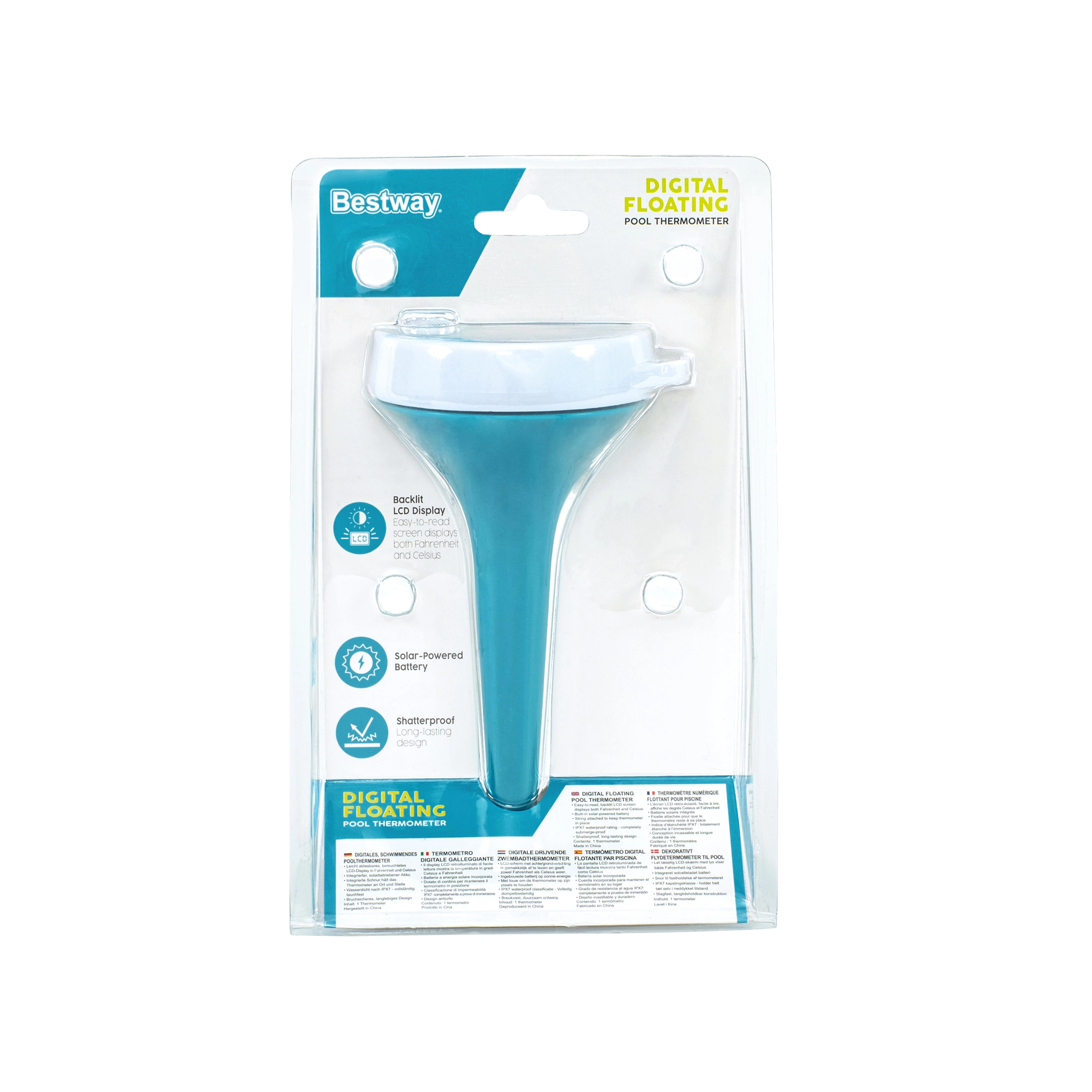Tartsa kézben a víz ideális hőmérsékletét a BESTWAY lebegő digitális hőmérővel. A napelemes tápellátásnak köszönhetően elemcsere nélkül működik, a vízálló, lebegő kivitel megbízható üzemet biztosít, a jól olvasható LCD kijelző pedig °C és °F egységben is mutatja a hőmérsékletet. A csomag része egy rögzítőkötél, amely megakadályozza, hogy elsodródjon.