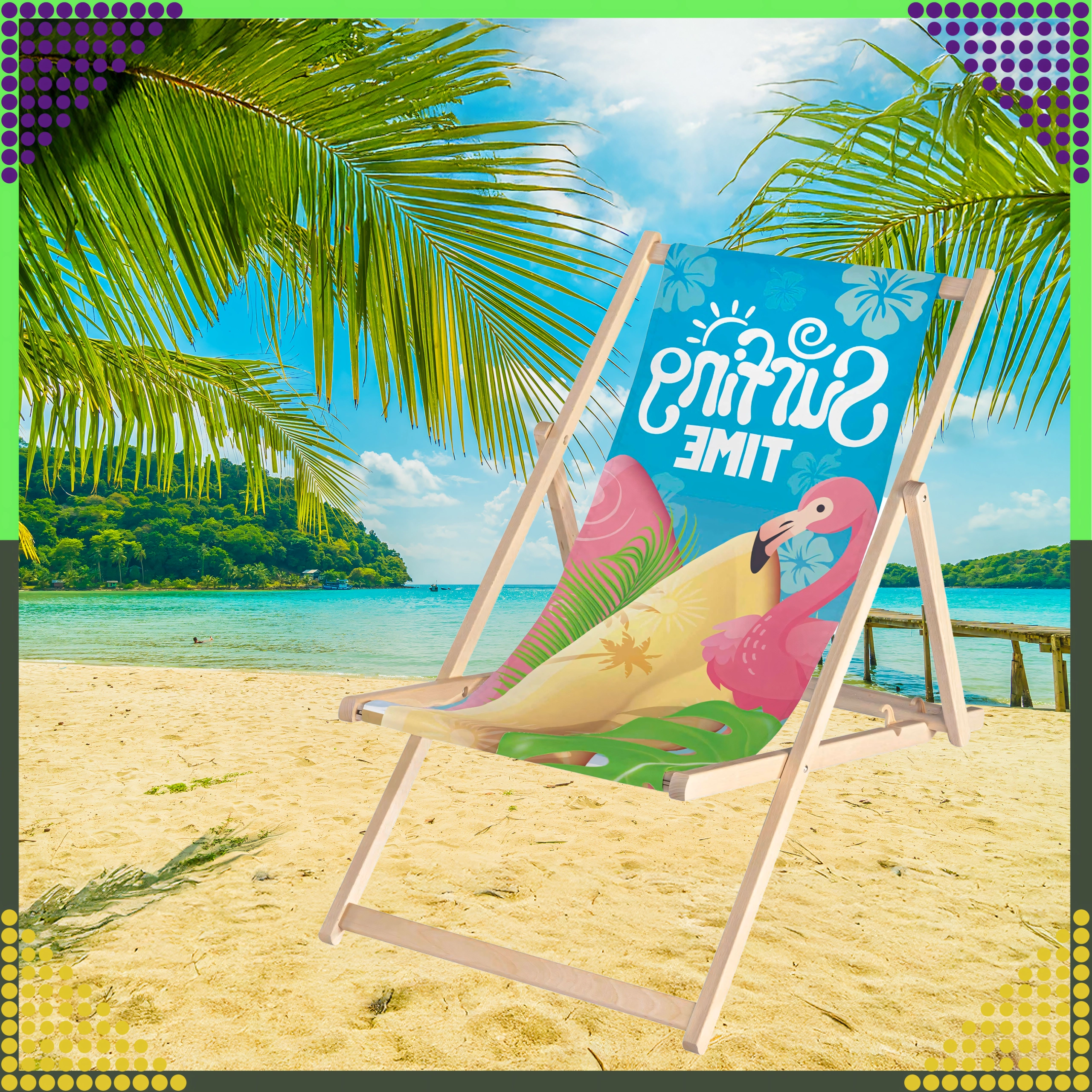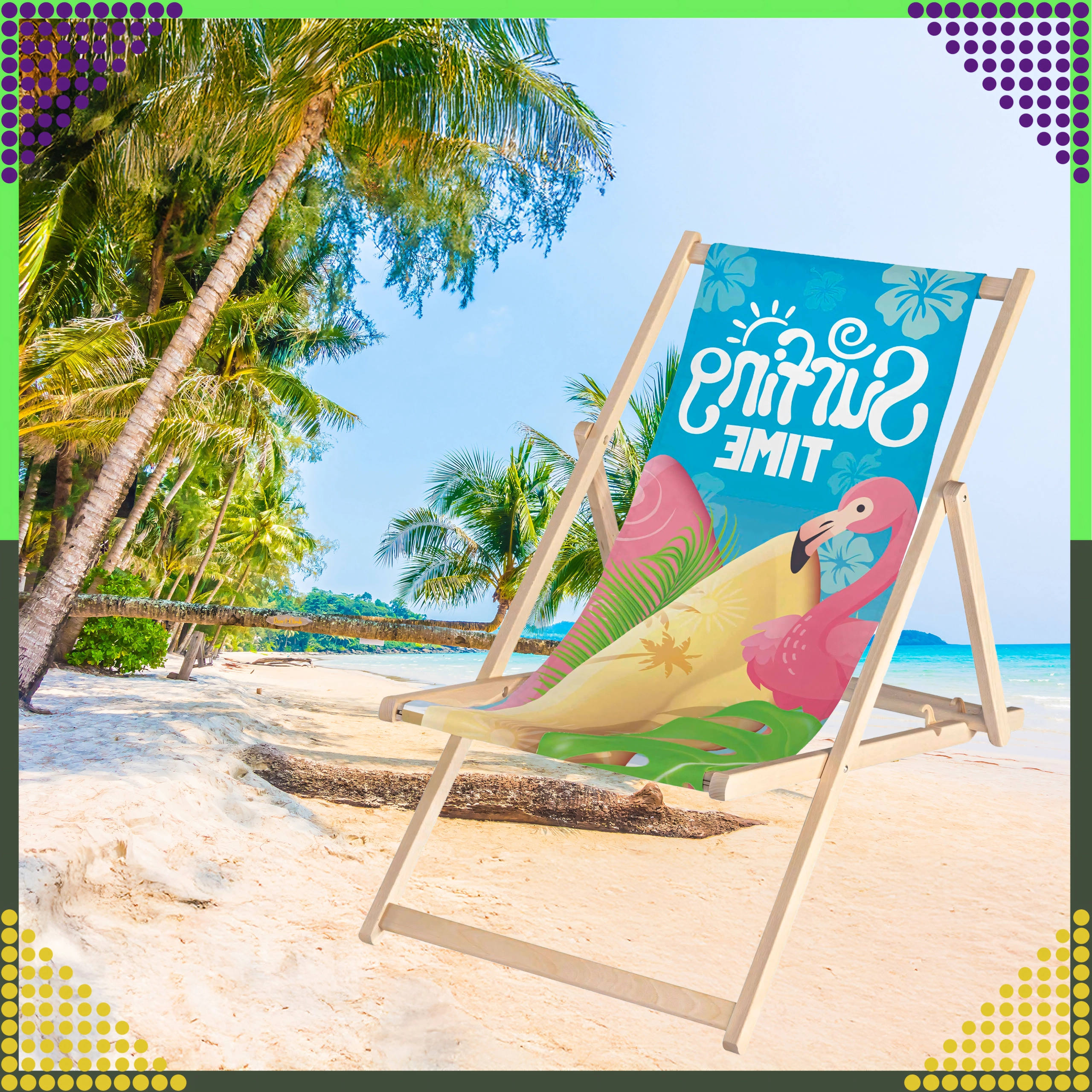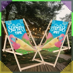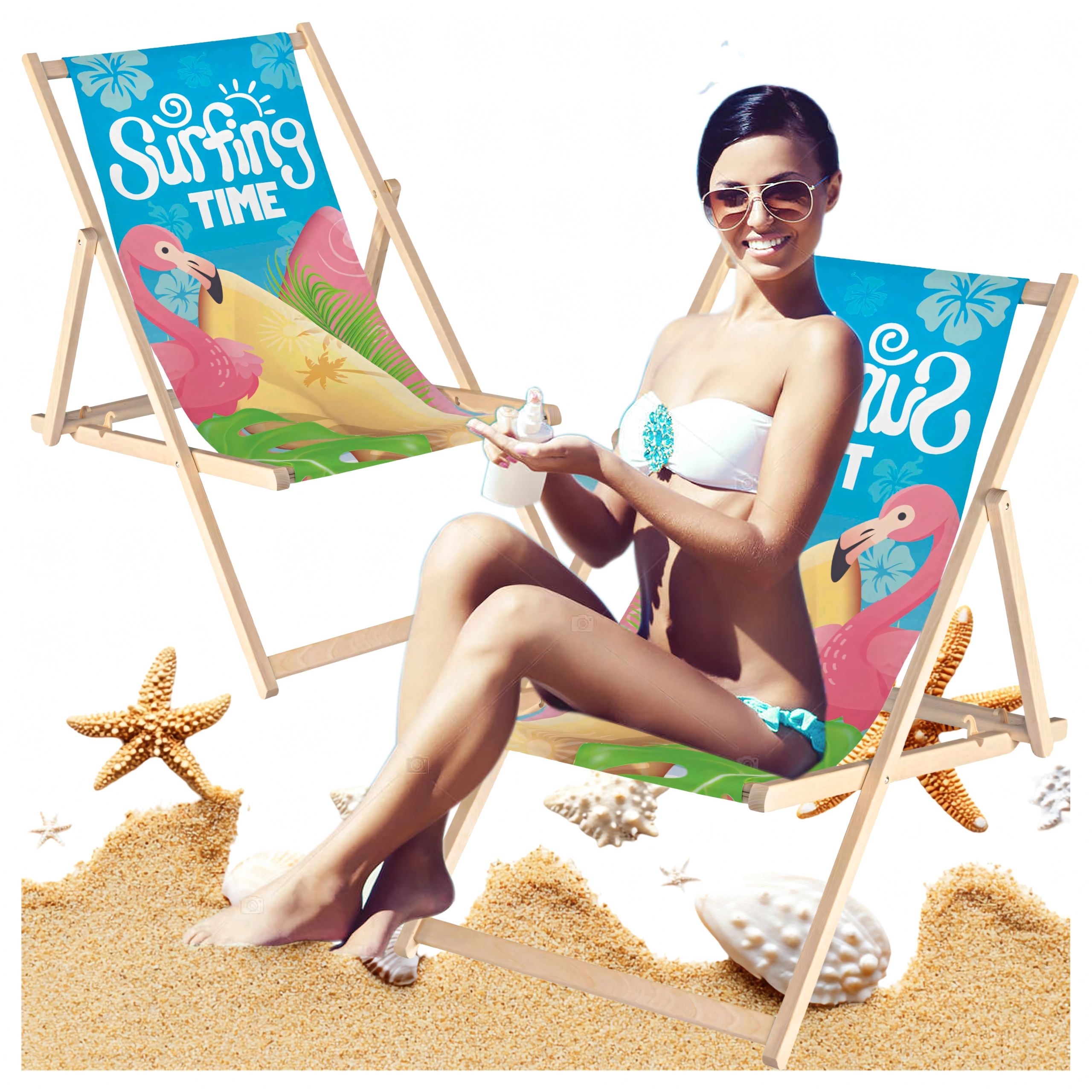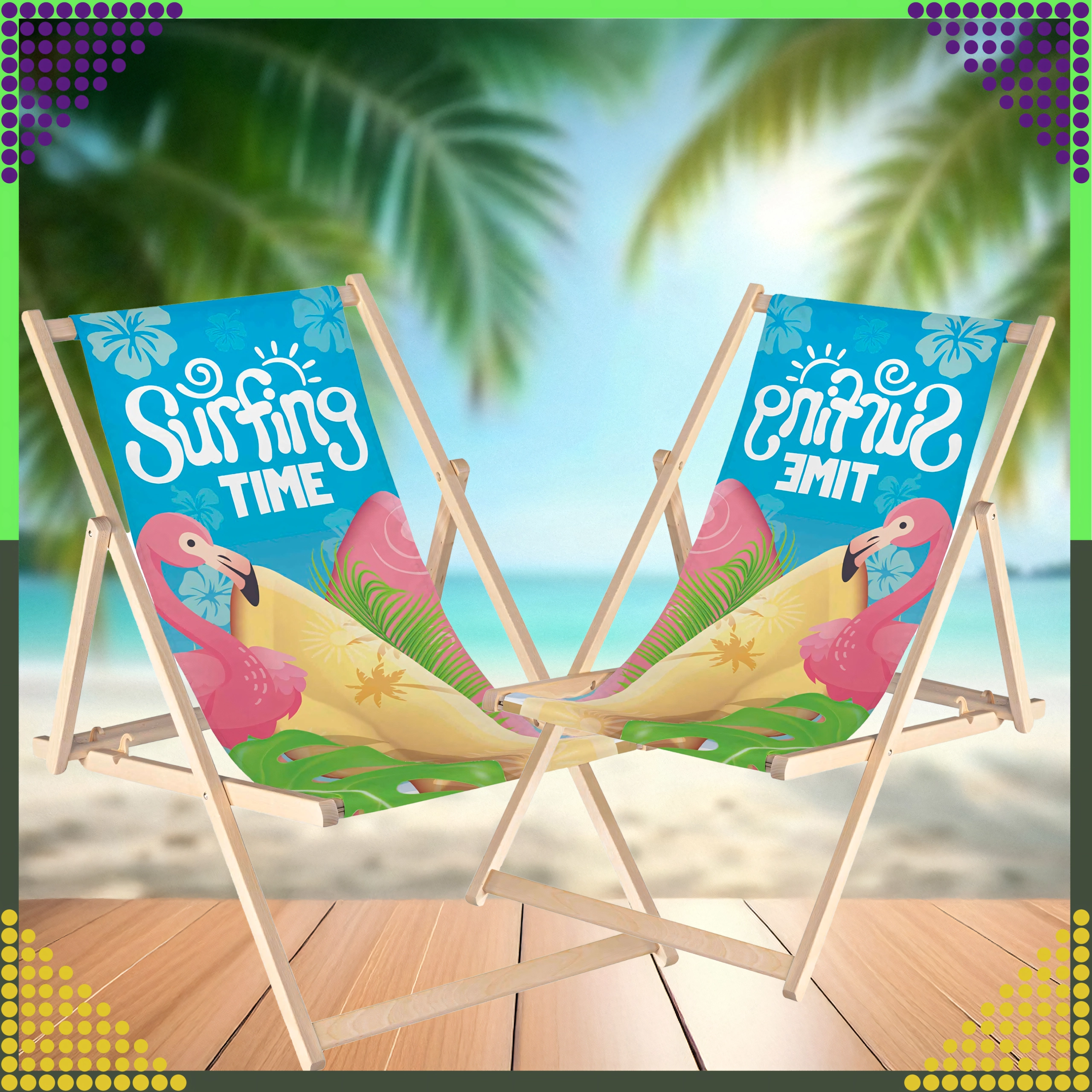 A két darabos összecsukható nyugágy szett a természetes fát kombinálja tartós vászon textillel és „Surfing Time” flamingós, színes nyomattal. A többpozíciós mechanizmusnak köszönhetően könnyedén beállítható a kényelmes ülő- vagy fekvőszög. A könnyű szerkezet egyszerű hordozást és tárolást tesz lehetővé otthon és utazás közben is.