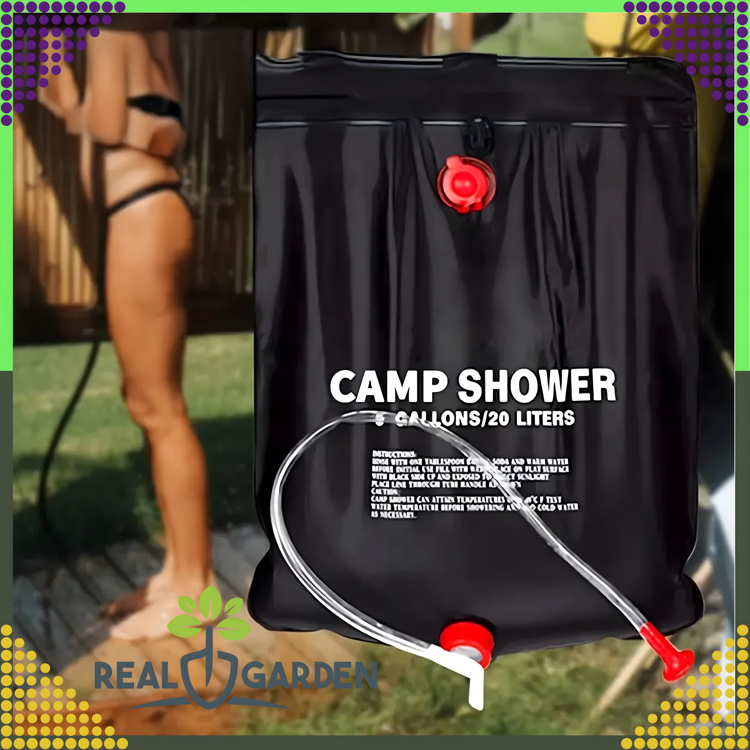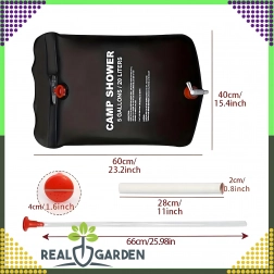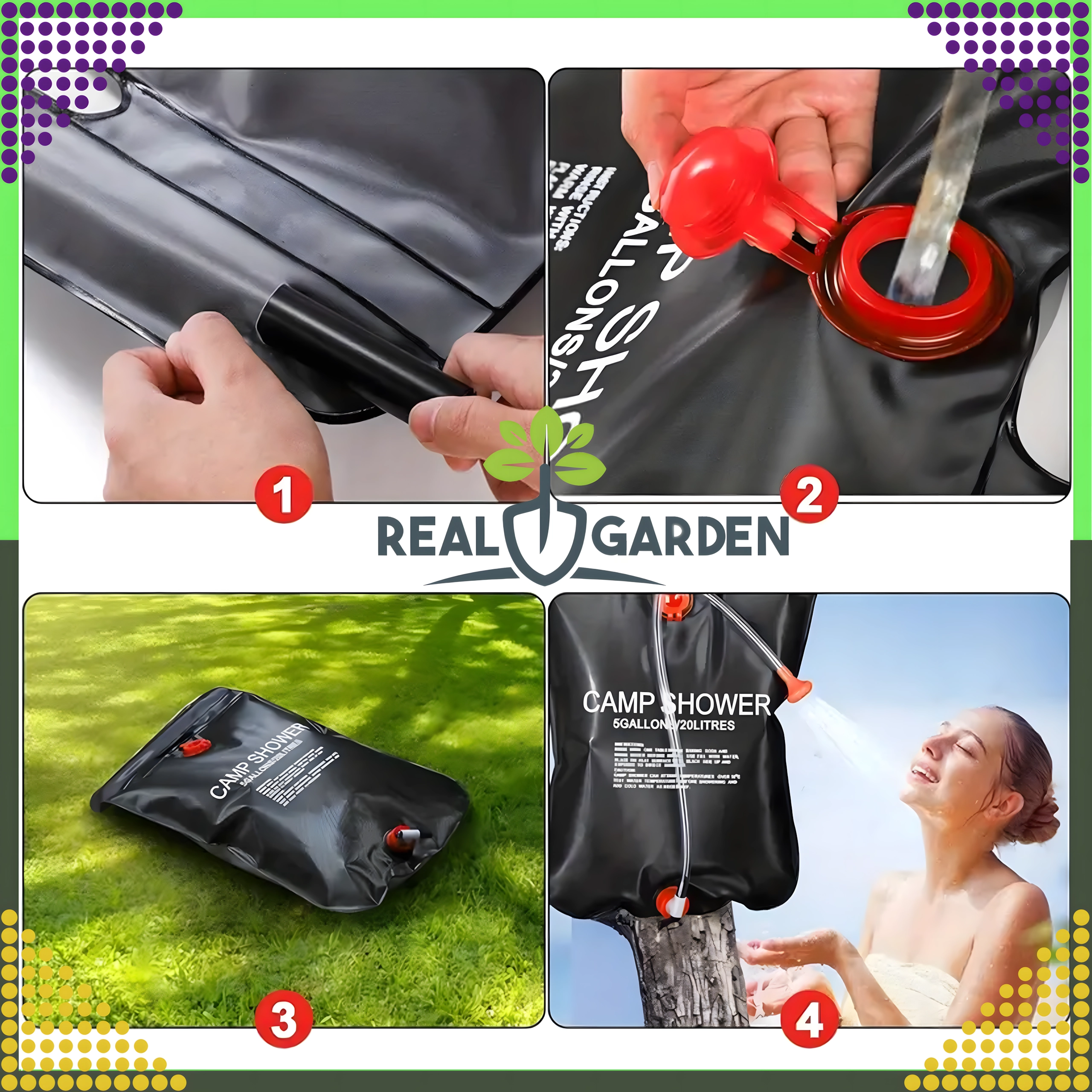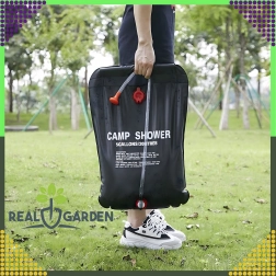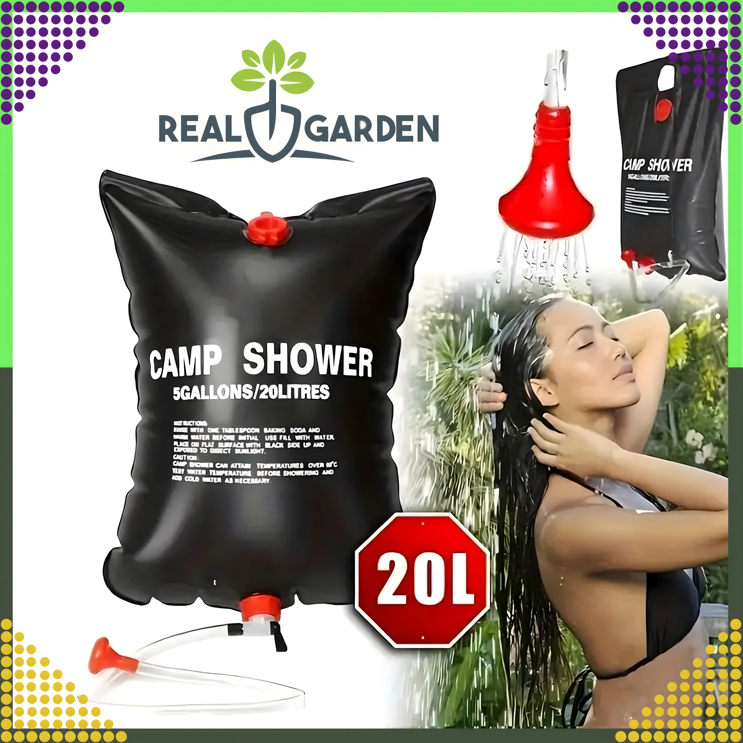 A zuhany erős akasztófüllel és praktikus zuhanyfejjel van felszerelve, ami kényelmes használatot biztosít a kempingben, vízparton vagy a kertben.