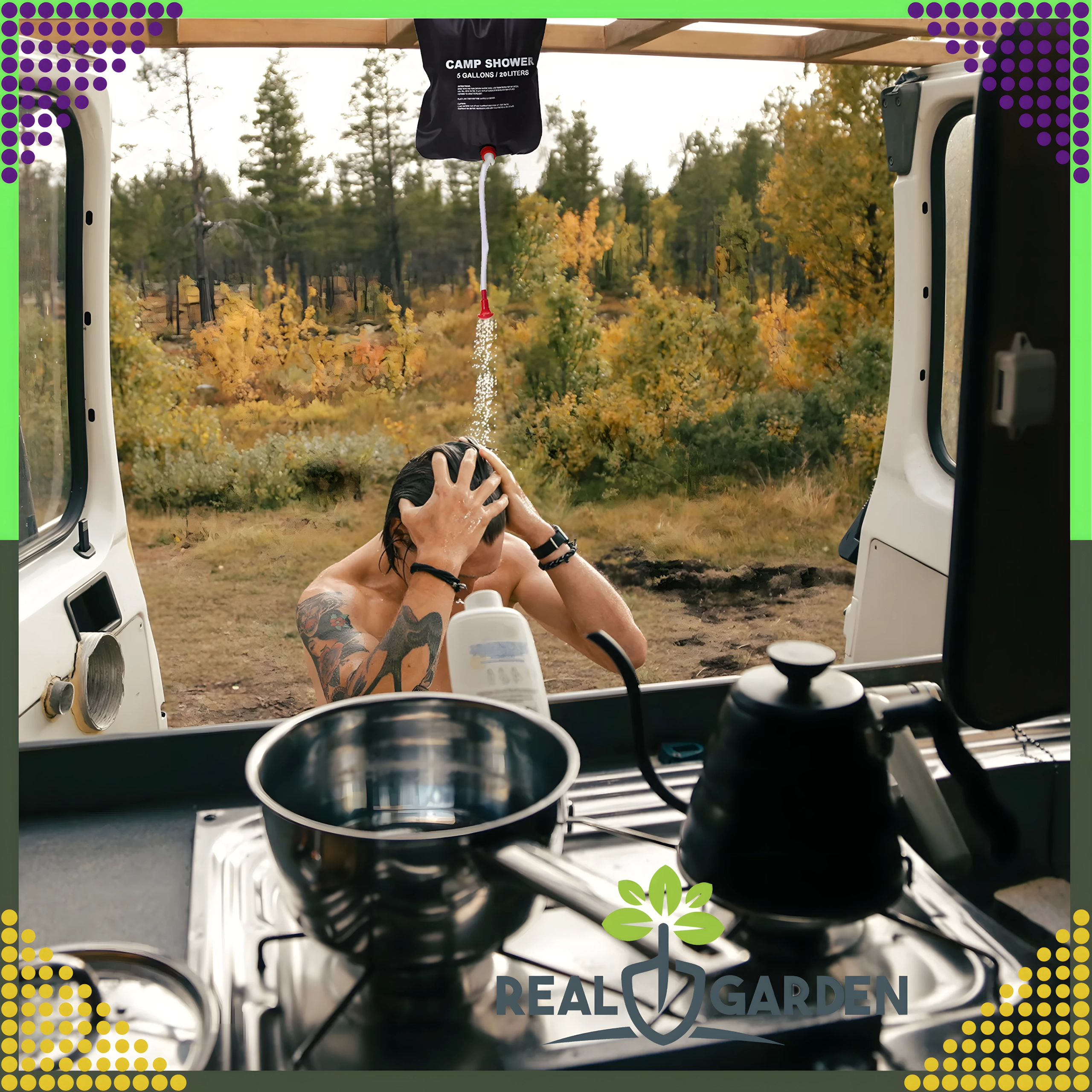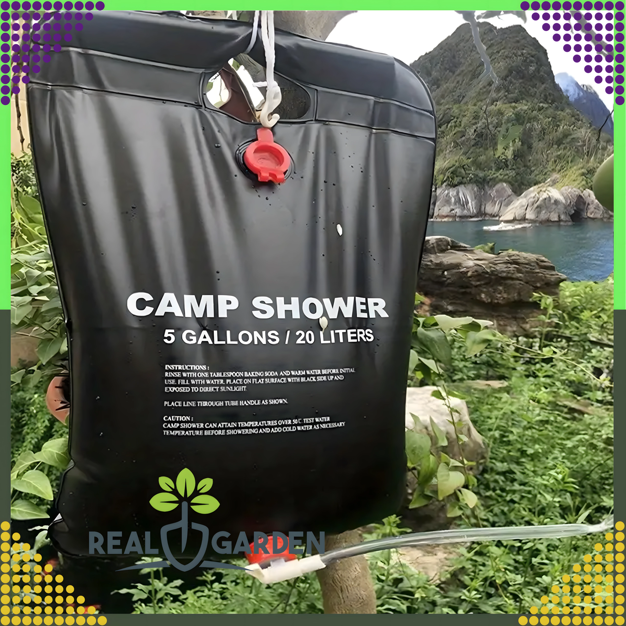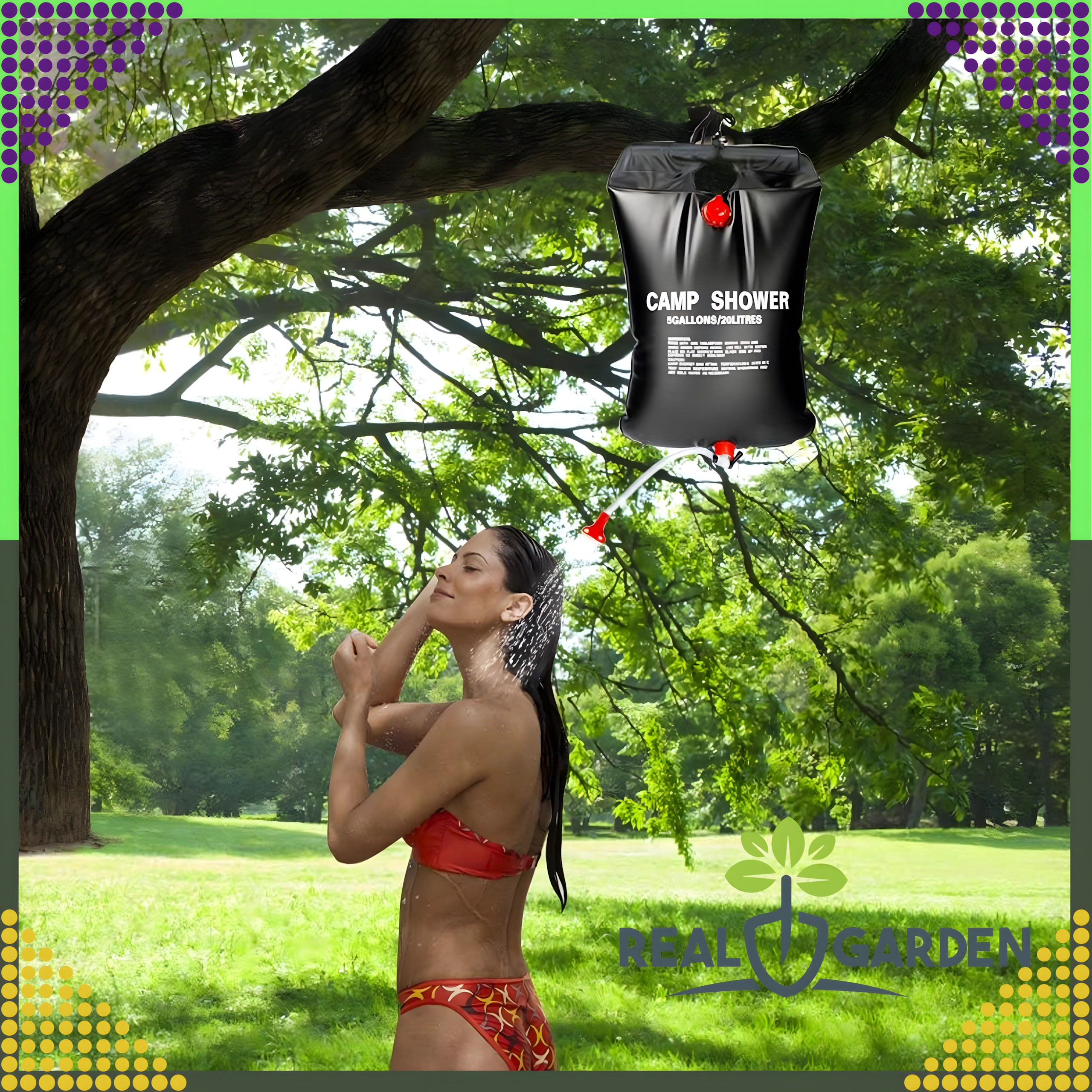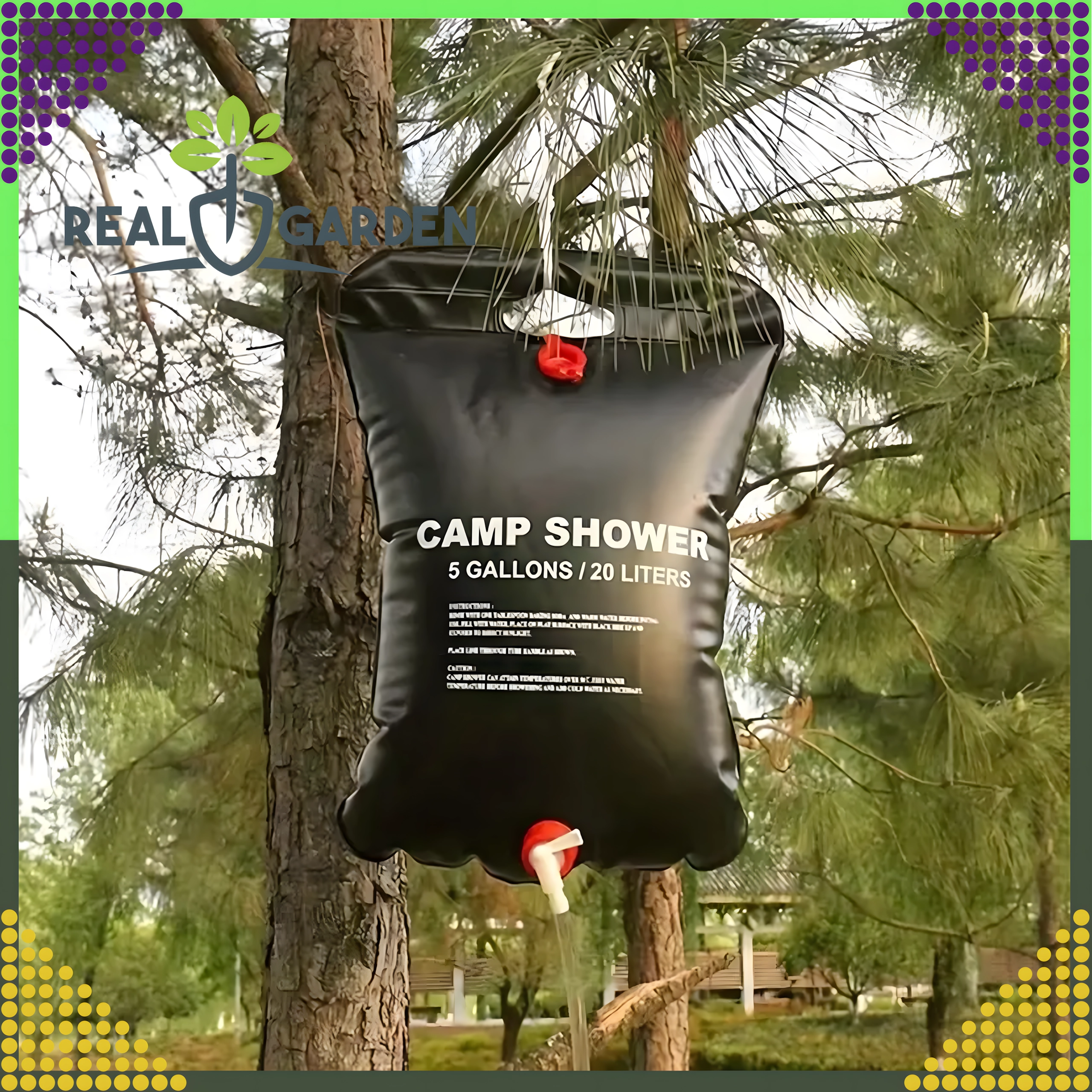 A zuhany erős akasztófüllel és praktikus zuhanyfejjel van felszerelve, ami kényelmes használatot biztosít a kempingben, vízparton vagy a kertben.