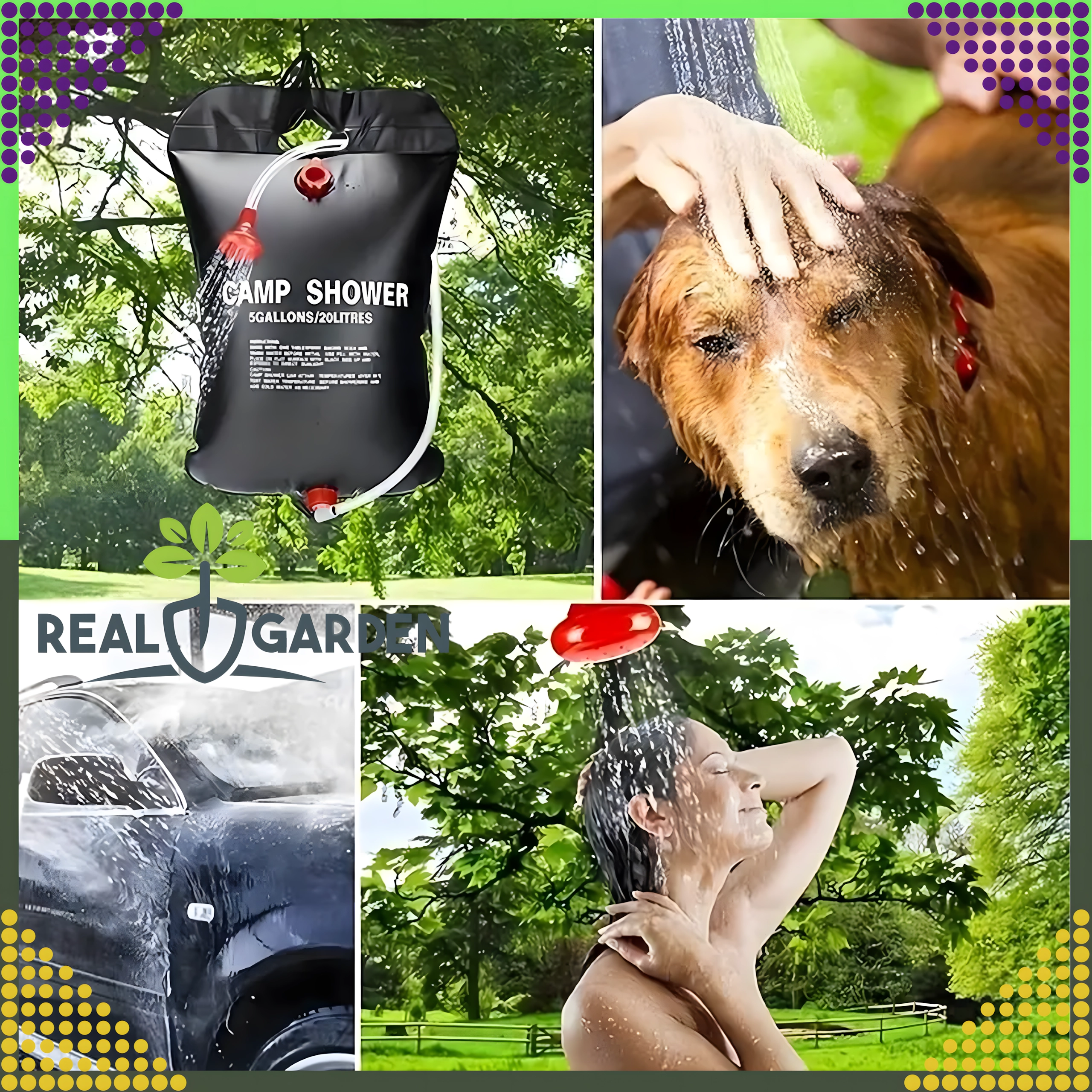 Praktikus, 20 l űrtartalmú napelemes zuhany, ideális kempingezéshez, strandra és szabadtéri használatra. A napenergiás felfűtésnek akár 48 °C-ig köszönhetően bárhol élvezheti a kellemes vízsugarat. Összecsukva kompakt, akasztófüllel és zuhanyfejjel a csomagban – kényelem és higiénia útközben.