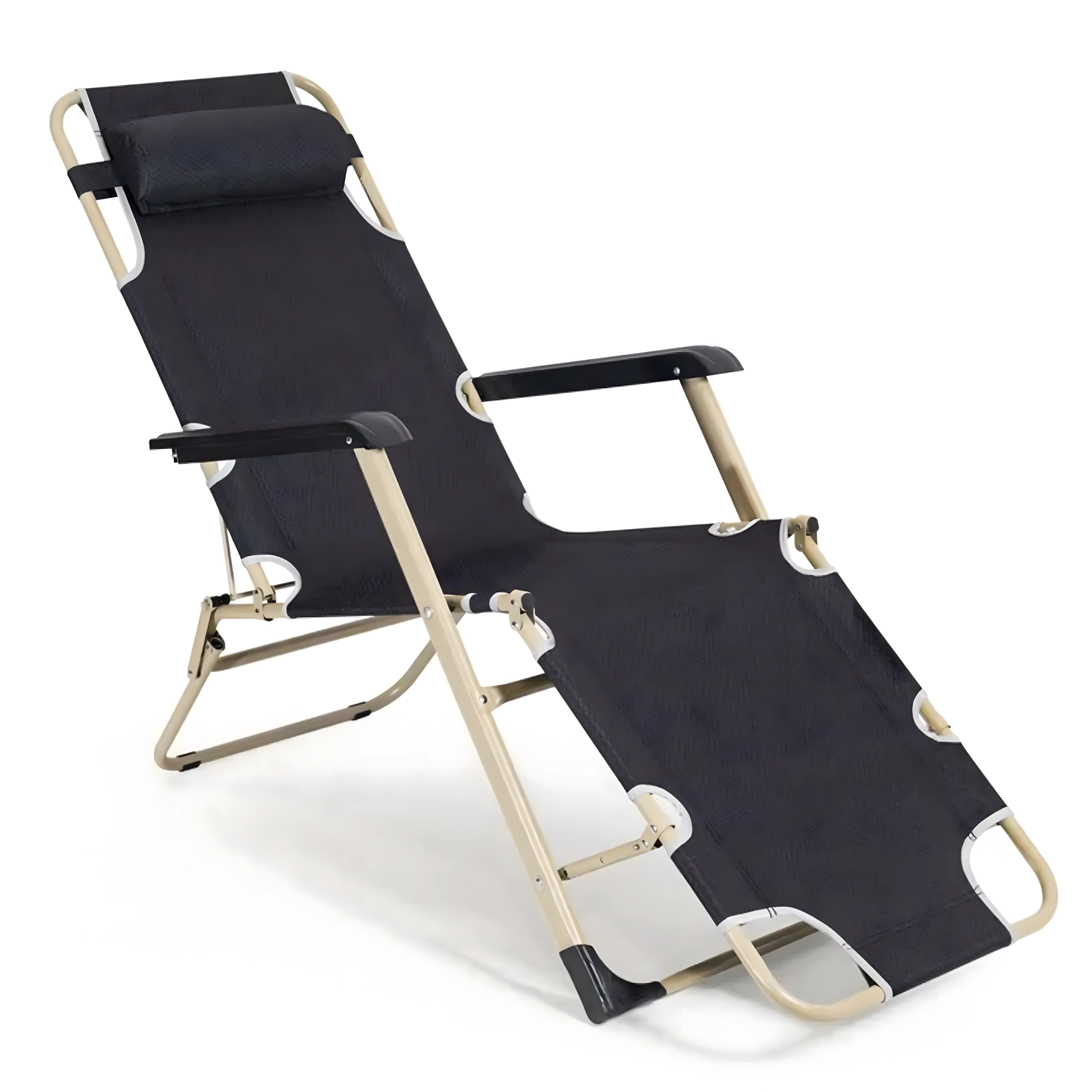 Ez az állítható, gravitációs nyugágy a maximális kényelem és a stabil felépítés kombinációját kínálja. A vastag, steppelt párna integrált fejtámasszal egész napos pihenéshez nyújt puha alátámasztást, míg a masszív fémkeret biztonságot ad ülve és fekve egyaránt.
