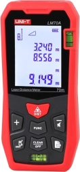 Az UNI‑T LM70A megbízható lézeres távolságmérő építőipari felhasználásra, belsőépítészethez és műszaki felügyelethez. Akár 70 méterig biztosít pontos távolságmérést, intuitív kezelést és tartós, kézre álló házat. A háttérvilágítású 2" LCD kijelzőnek köszönhetően gyengébb fényviszonyok között is könnyen leolvashatók az értékek.