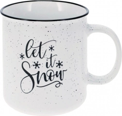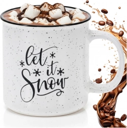 Nagy téli bögre minőségi kőedényből, 700 ml kapacitással, Let it Snow felirattal. Az ellenálló anyag kiválóan tartja a hőt, a bögrének kényelmes füle van, mosogatógépbe és mikrohullámú sütőbe is alkalmas, és remek választás forró csokihoz, teához és kávéhoz.