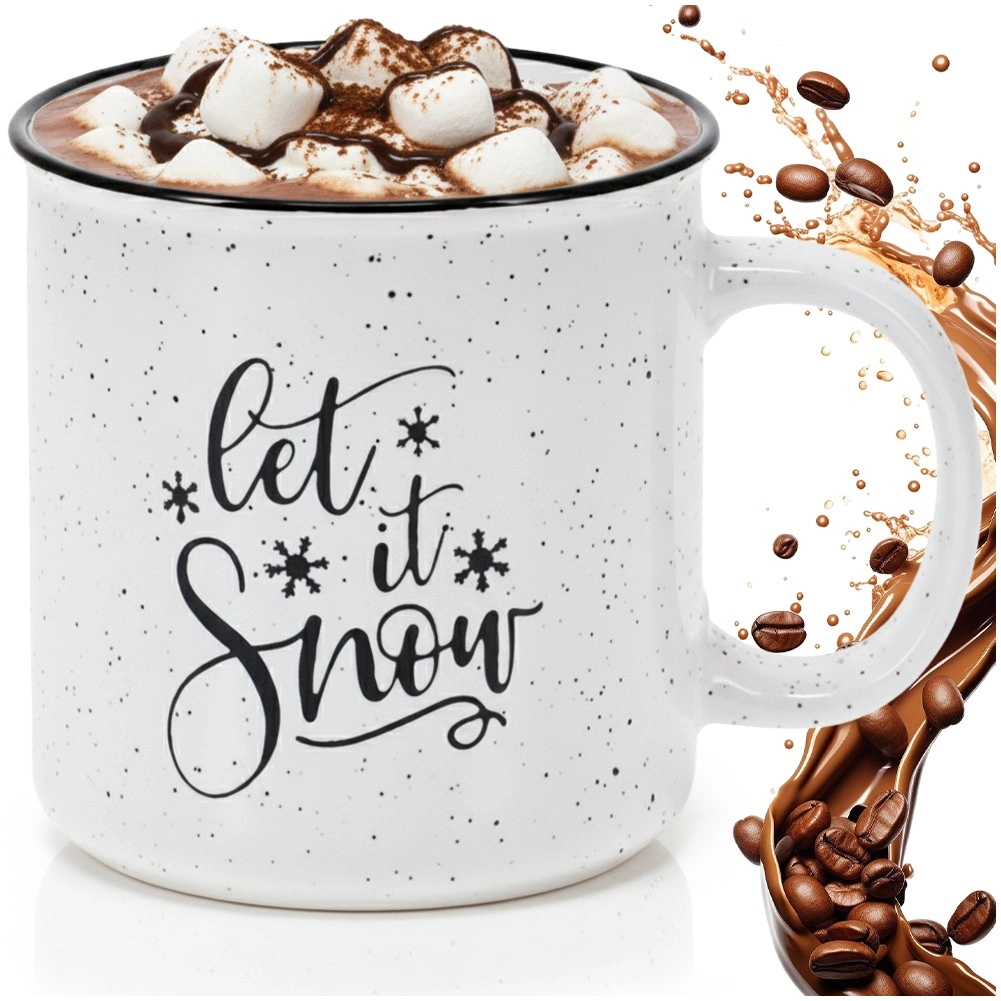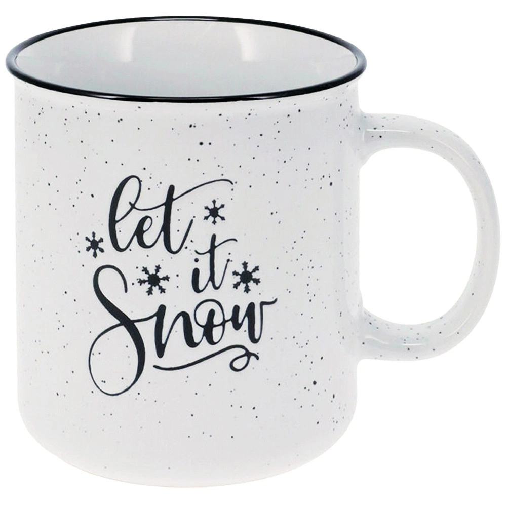 Fedezze fel a nagy űrtartalom kényelmét elegáns téli dizájnban. A Let it Snow feliratú, apró pettyes kőedény bögre ideális a hosszú téli estékhez – tovább melegen tartja italát, és a széles peremnek köszönhetően kényelmes belőle inni.