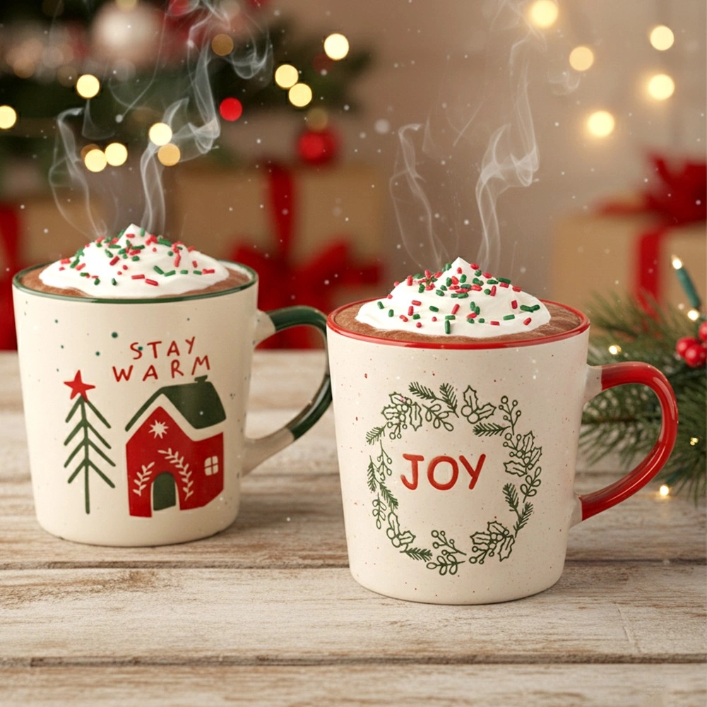 A bögréket finom ünnepi motívumok díszítik JOY és STAY WARM felirattal, kontrasztos piros és zöld részletekkel. A teljes szett esztétikus ajándékcsomagolásban található, így remek ajándékötlet családnak vagy barátoknak. A praktikus használatot a mosogatógépes tisztítás és a mikrohullámú melegítés lehetősége egészíti ki.