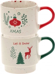 Vigyen ünnepi hangulatot otthonába a két darab, 350 ml-es kőedény bögre elegáns készletével. Minden bögrét ünnepi motívumok és a LET IT SNOW valamint STAY WARM felirat díszít, kényelmes füllel, tartós kivitelben, és mosogatógépben és mikrohullámú sütőben is használható. A stócolható kialakítás helytakarékos, és remek választás teához, kávéhoz vagy forró csokoládéhoz.