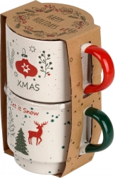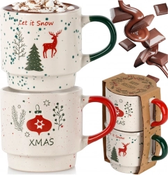 Fedezze fel a téli pillanatok varázsát a két darab, minőségi kőedény bögréből álló készlettel bézs színben, piros és zöld részletekkel. A masszív anyagnak köszönhetően kiválóan tartják a hőt, kényelmes a fogásuk, időtlen formájuk pedig bármelyik konyhába illik. Ideális stílusos ajándék szeretteinek, vagy praktikus kiegészítője lehet karácsonyi készletének.