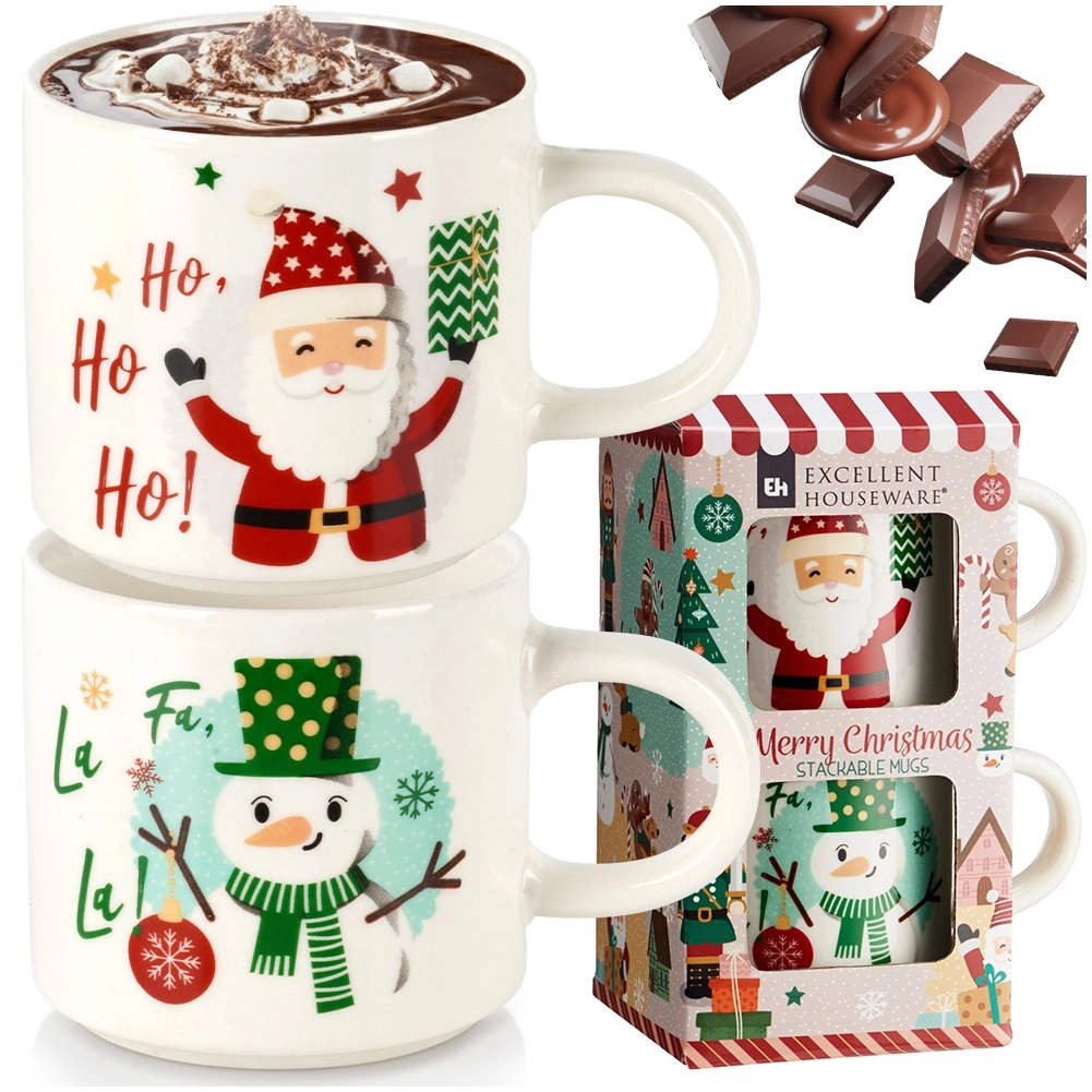 Vigye be az otthonába az ünnepi hangulatot ezzel a két darabos, 400 ml-es porcelán bögreszettel – MIKULÁS és hóember motívummal. Ideális teához, kávéhoz és forró csokihoz, kényelmes füllel, mosogatógépben és mikróban is használható, ajándékcsomagolásban szállítva.
