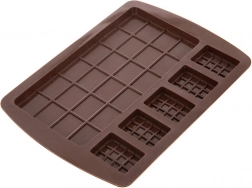 A formát biztonságosan használhatja sütőben, mikrohullámú sütőben, hűtőben és fagyasztóban. Ideális hűtést és melegítést igénylő desszertekhez. Egy nagy, 15 × 7,5 cm-es táblát és öt mini, 3,5 × 2,5 cm-es táblát készíthet, a csokoládé vastagsága körülbelül 0,5 cm.