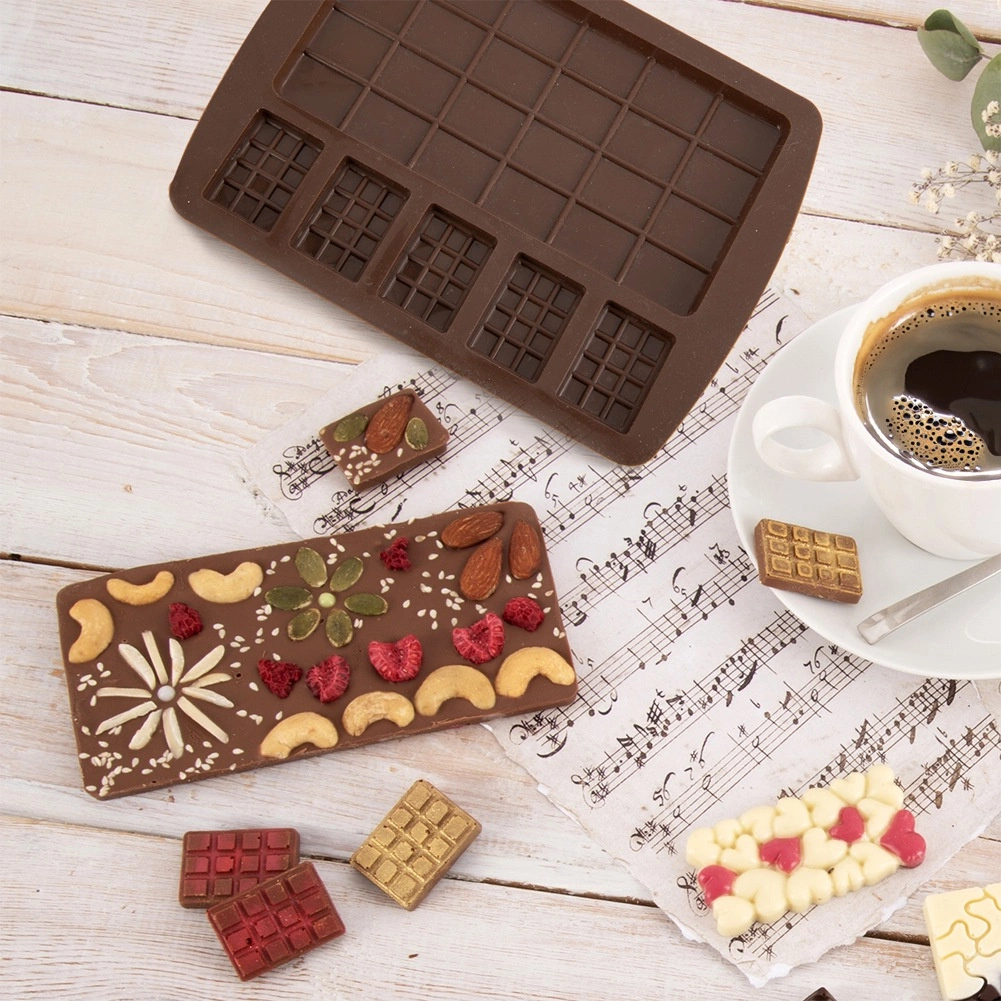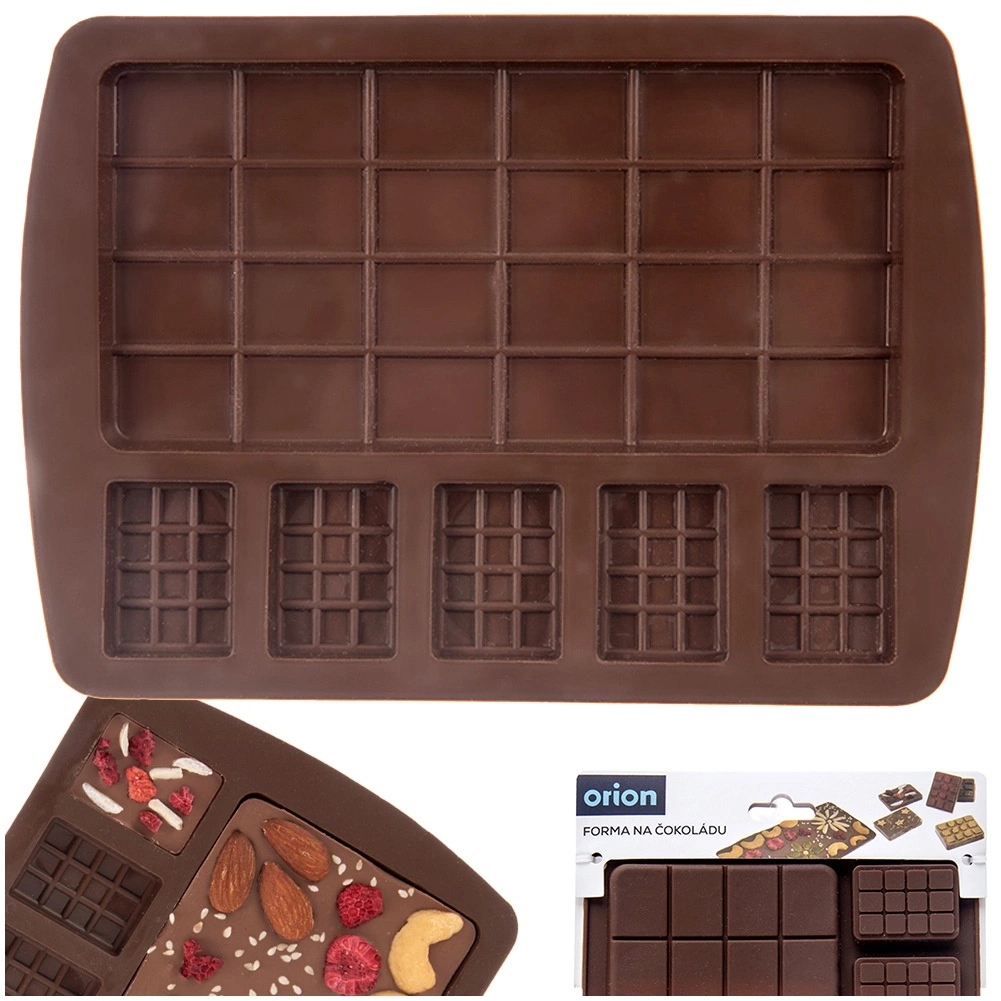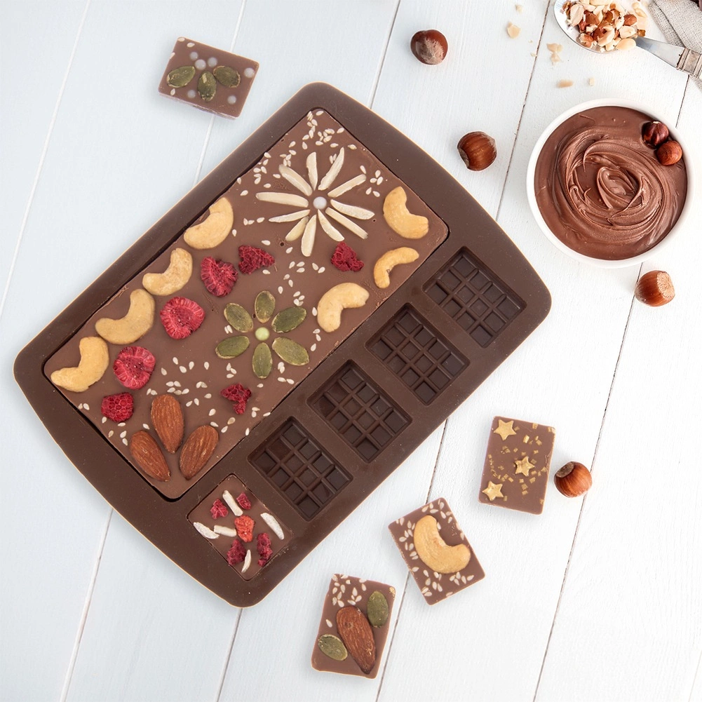 Ezzel a sokoldalú, minőségi szilikon formával látványos táblákat és mini pralinékat készíthet dióval, aszalt gyümölccsel vagy keksszel. A rugalmas anyag masszív, tartós és nem tapad, így a kész darabokat sérülés nélkül fordíthatja ki. A forma teljes mérete 18,5 × 13,5 × 1,5 cm.