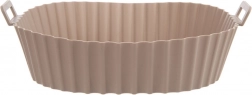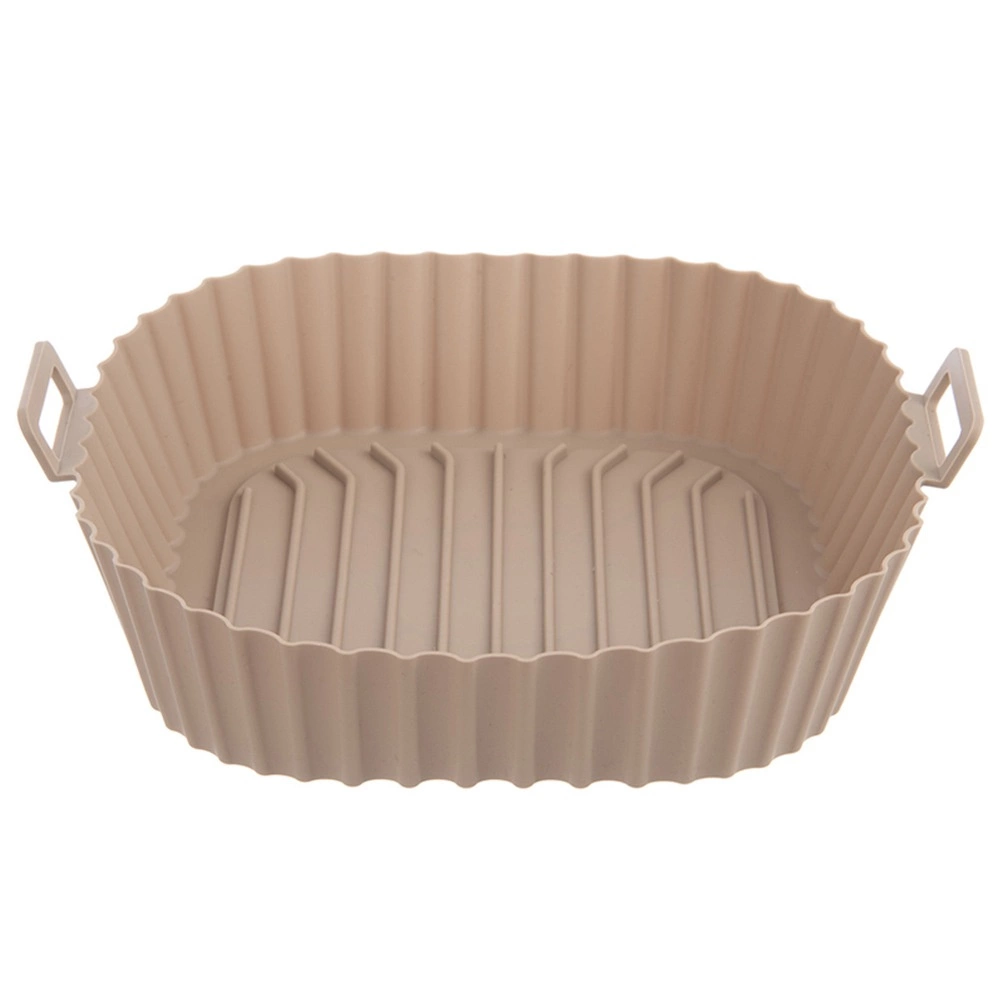 A bézs szilikon betétkosár Air Fryerhez 22 × 22 × 7 cm méretben (alj: 18 × 18 cm) védi a sütő belsejét az ételmaradékoktól és egyszerűsíti a karbantartást. A tapadásmentes felület megakadályozza az odakapást, az integrált fogantyúk pedig megkönnyítik a betét behelyezését és kiemelését.