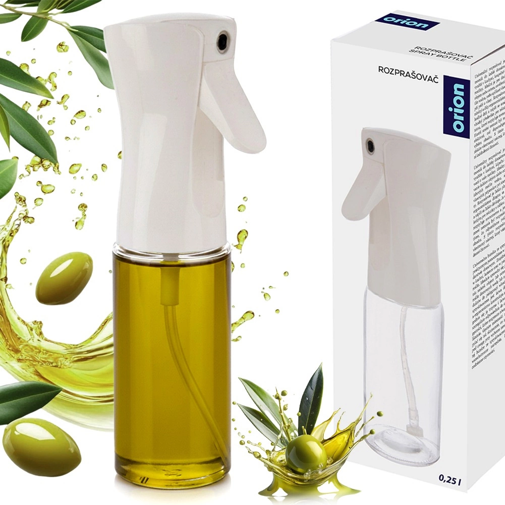 Praktikus, 250 ml-es üveg permetező az olaj, ecet és más folyékony ízesítők egyenletes adagolásához. A finom ködnek köszönhetően biztosítja a precíz felvitelt, az alacsonyabb fogyasztást és a tisztább munkát a konyhában. Az átlátszó tartály lehetővé teszi a tartalom ellenőrzését, az ergonomikus ravasz pedig kényelmes használatot és egyszerű tisztítást garantál.