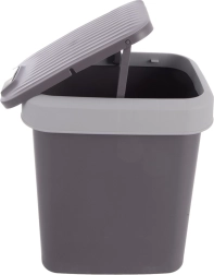 Ez a 12 literes, praktikus szemetes kiváló választás a mindennapi használatra otthon és az irodában. A két szürke árnyalatú, masszív műanyag kivitel könnyű, tartós és egyszerűen karbantartható. A billenő fedél kényelmes bedobást tesz lehetővé több irányból, és hatékonyan csökkenti a kellemetlen szagok terjedését.