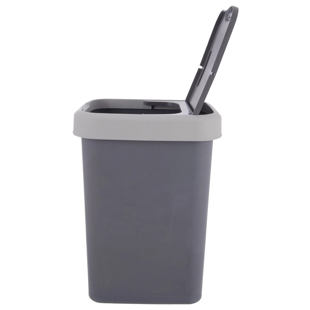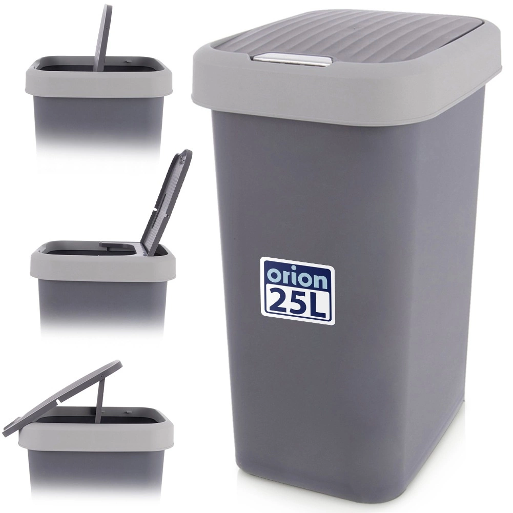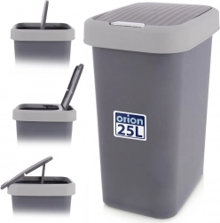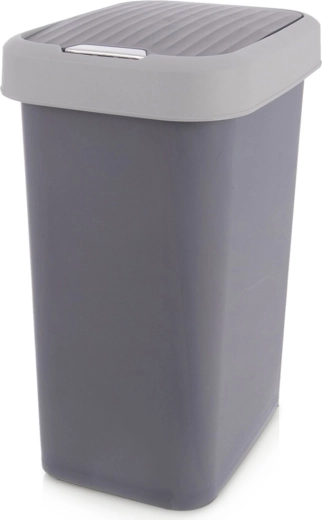 A 25 l űrtartalmú szemetes ideális választás otthonokba és irodákba. A masszív műanyag kivitel két árnyalatú szürkében modern hatású és könnyen tisztítható. A billenő fedél hatékonyan korlátozza a szagok terjedését, a széles nyílás pedig megkönnyíti a hulladék bedobását és a zsákcsere folyamatát.