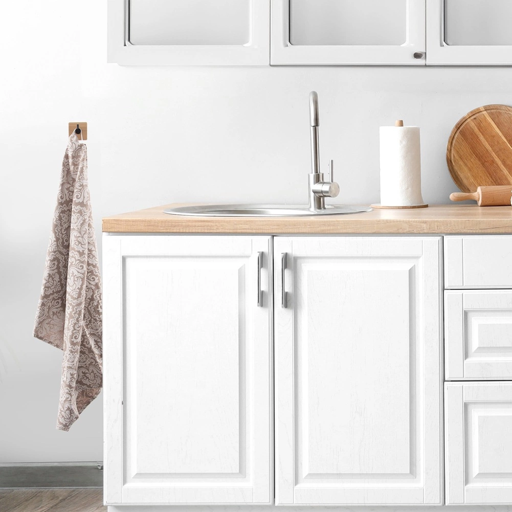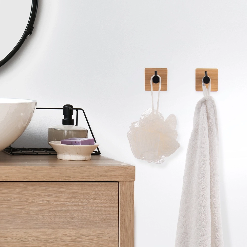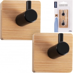 Stílusos akasztók bambusz alaplemezzel és fekete fém csappal a mindennapi kényelemért. A öntapadó hátoldalnak köszönhetően a telepítés gyors és tiszta – fúrás, por és szerszámok nélkül. A minimalista dizájn remekül illik modern enteriőrökhöz és természetes hangulatú terekhez is.