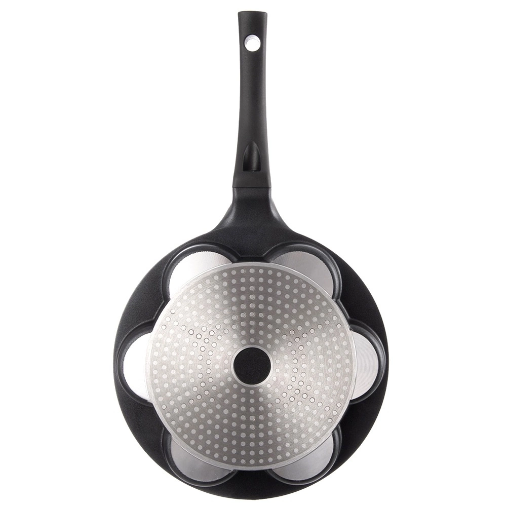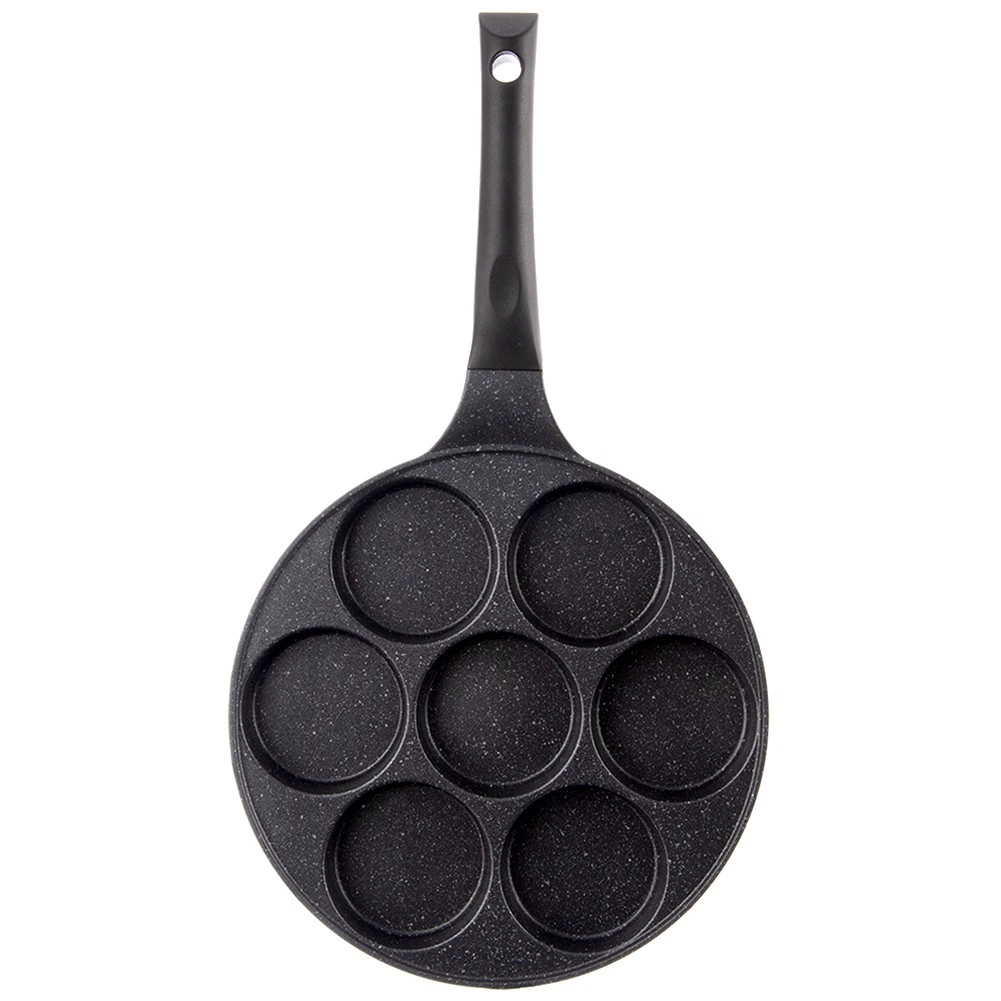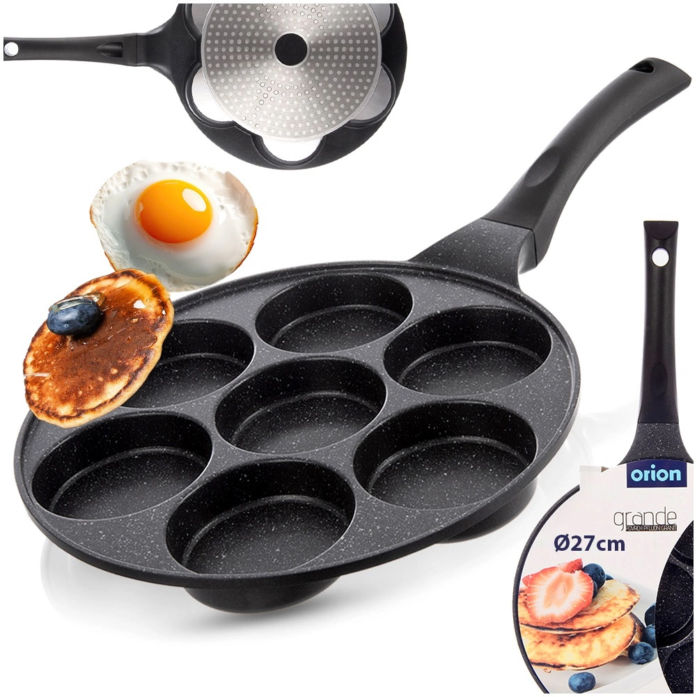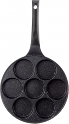 Ez a stílusos, tapadásmentes gránit felületű serpenyő ideális a gyors reggelik és snackek elkészítéséhez. A hét kerek formának köszönhetően mindig egyforma, tökéletes alakú adagokat kap – a tükörtojástól a mini palacsintákig. Az alumínium test PFLUON GRANIT gránit bevonattal egészségesebb sütést tesz lehetővé minimális olajjal, és megkönnyíti a tisztítást.