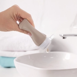 A rugalmas flakontest pontos, tiszta, egykezes adagolást tesz lehetővé samponokhoz, gélekhez vagy testápolókhoz.