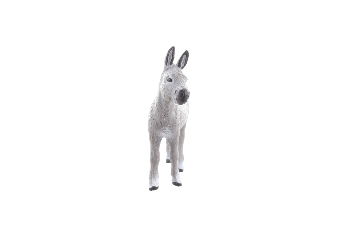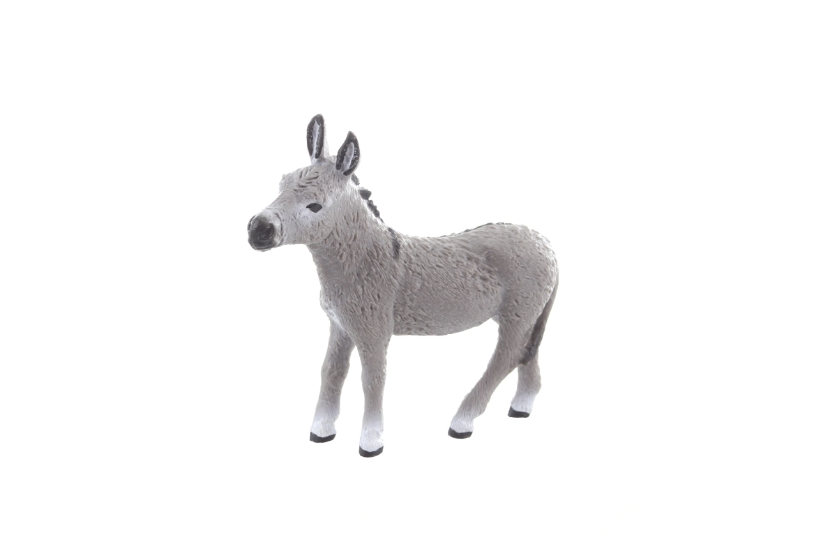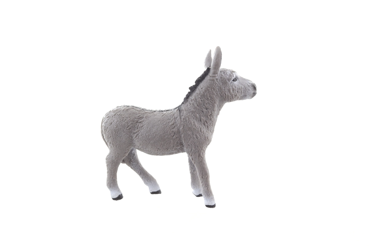 Ez a műanyag szamárfigura, kb. 9 × 9 × 3 cm-es méretben, a valósághű formázásra és a kézzel festett hatású részletekre helyezi a hangsúlyt. Tartós anyagának köszönhetően bírja a gyerekjátékot, és alkalmas szerepjátékokra, farmépítésre vagy oktatási projektekhez.