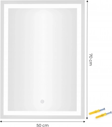Vigyen tiszta designt és praktikus megvilágítást a fürdőszobájába. Ez a fali LED tükör finom hátsó háttérvilágítással kiemeli a dekorációt, miközben erős és egyenletes fényt ad az ápoláshoz. Az előlapon lévő érintőgomb diszkréten meg van világítva, így félhomályban is könnyen megtalálható.