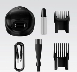- USB‑C töltőkábel, tisztítókefe, pengeolaj, 2 fésűs feltét