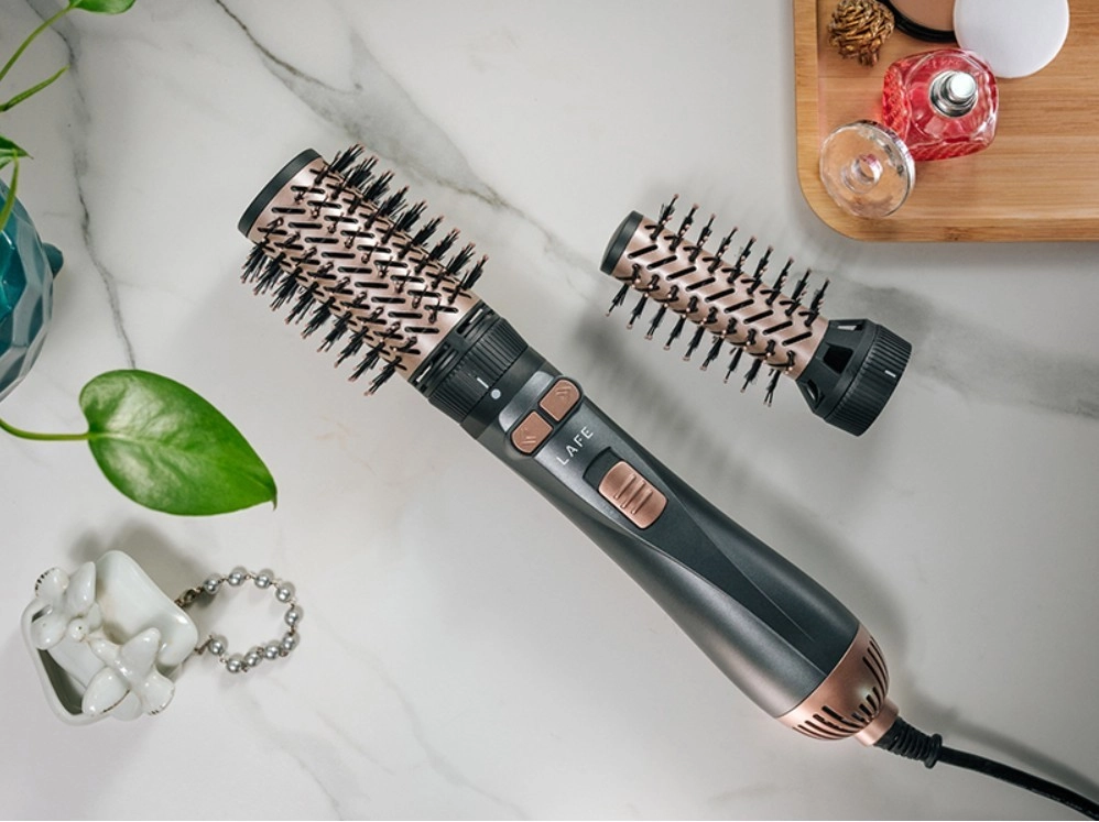 A LAFE Sleek & Shine Styler sokoldalú, forgó meleglevegős kefe, amelyet kényelmes otthoni beszárításhoz és formázáshoz terveztek. A szárítást és a formázást egy lépésben kombinálja, így időt takarít meg, miközben az ionizációs technológiának köszönhetően támogatja a haj egészséges megjelenését, csökkenti az elektromos feltöltődést, és sima, fényes frizurát hagy.