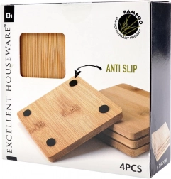 A bambusz tartós, könnyű és környezetbarát anyag, nem veszi át a szagokat, gyorsan szárad, és mérettartó. Az alátétek alja csúszásgátló tappancsokkal van felszerelve a maximális stabilitásért és a bútorok karcolódás elleni védelméért. Ideális otthonra és irodába, mindennapos használatra.