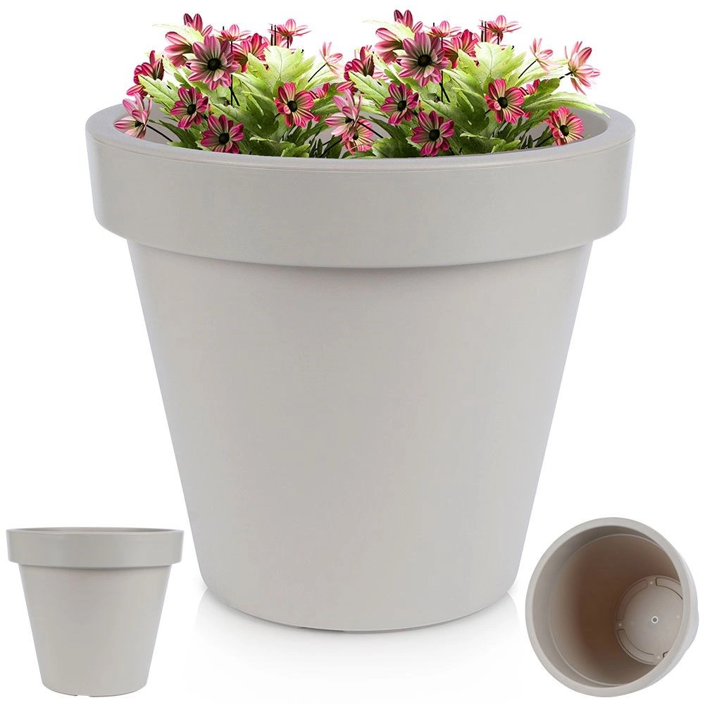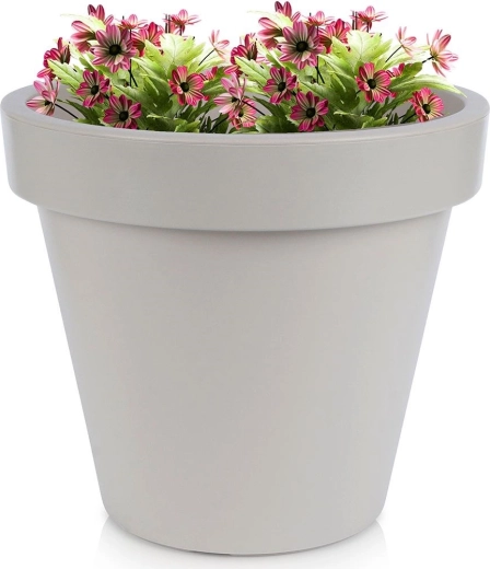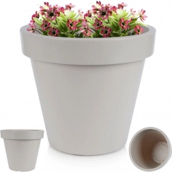 Praktikus és stílusos virágcserép klasszikus formával és széles peremmel, dísznövények, virágok és fűszernövények ültetéséhez. A könnyű súlynak köszönhetően könnyen kezelhető, mégis erős műanyagból készült, amely ellenáll a mindennapos használatnak és a változékony időjárásnak.