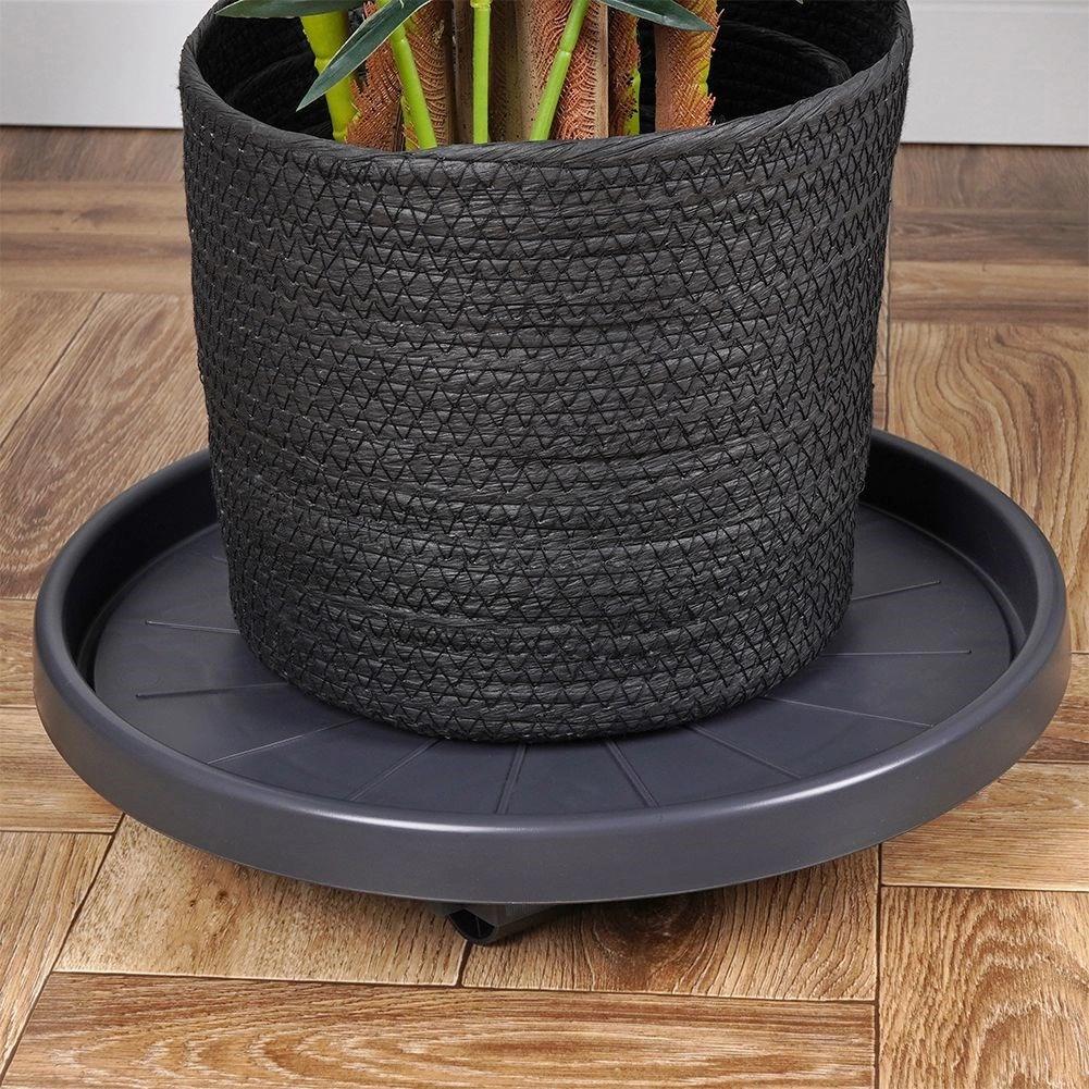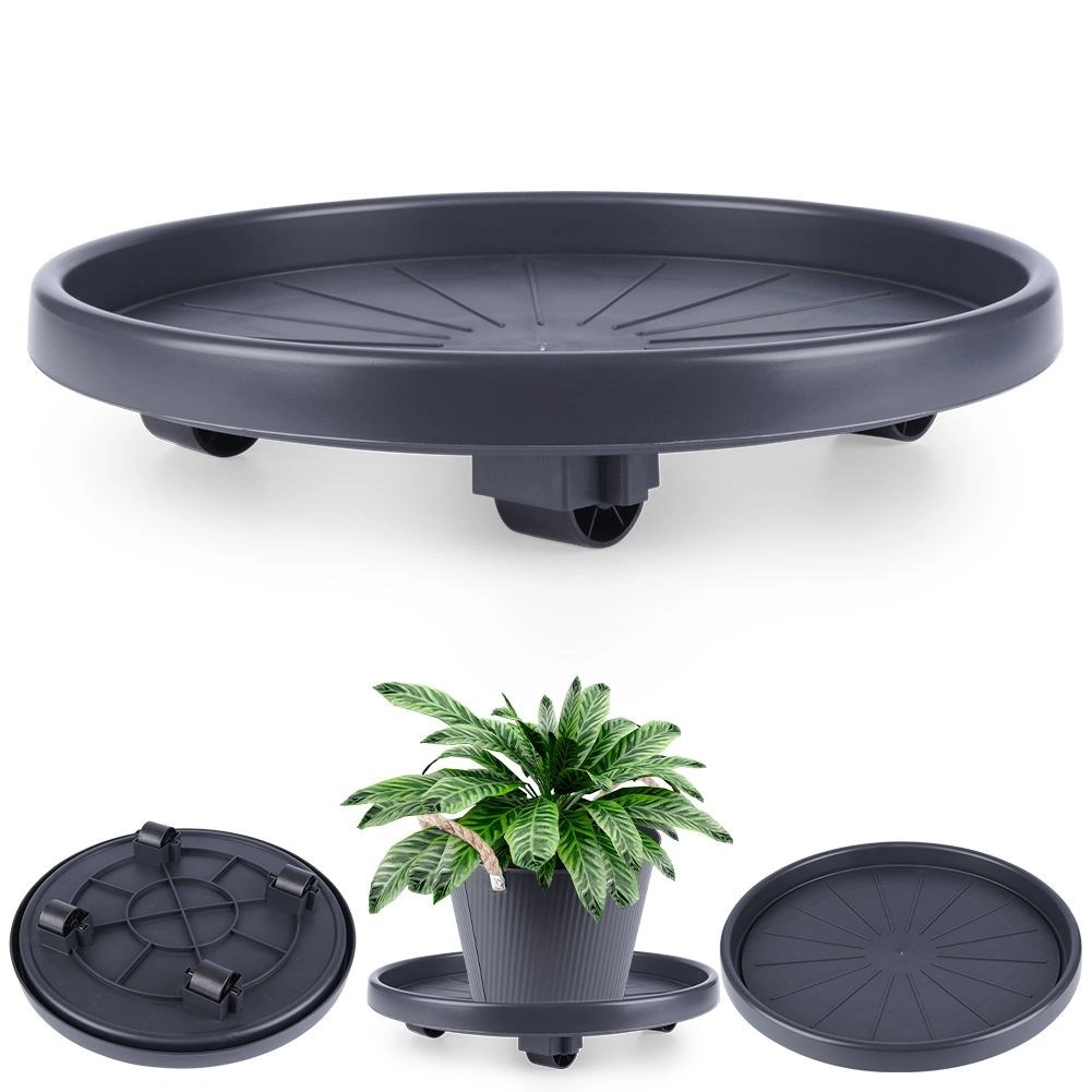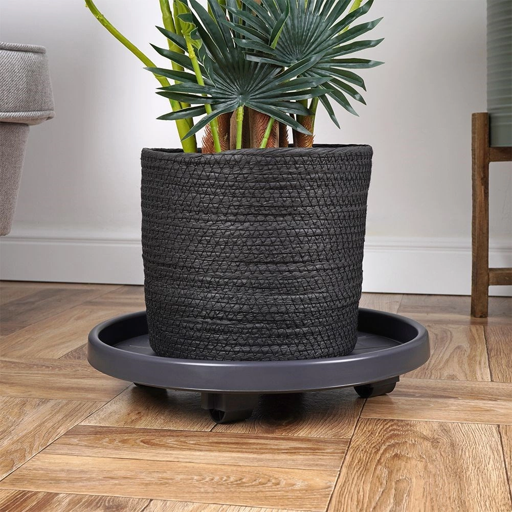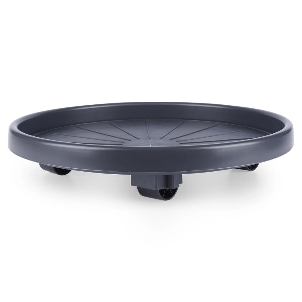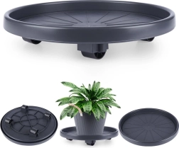 Magas minőségű, tartós műanyagból készült sötétszürke árnyalatban, fekete kerekekkel a hosszú élettartamért. Az alátét sokoldalú, beltéri és kültéri használatra egyaránt alkalmas – megkönnyíti a takarítást, az átrendezést és a szezonális növényáthelyezést, miközben védi a padlófelületet.