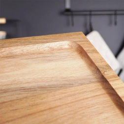 Ez az univerzális, lábakon álló tálalódeszka letisztult formájával és funkcionalitásával tűnik ki. A masszív akácfának köszönhetően ellenáll a nedvességnek és a deformációnak, ideális a mindennapi konyhai használathoz és vendégváráshoz egyaránt. A megemelt peremek a helyükön tartják az ételeket és megkönnyítik a hordozást.