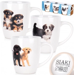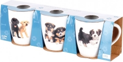 Szerezzen örömet magának ezzel a háromdarabos kerámia bögrekészlettel finom kutyamotívummal, amely feldobja a reggeli kávét és a délutáni teát is. A kompakt, 220 ml-es űrtartalomnak köszönhetően ideális espresso lungohoz, cappuccinóhoz, kakaóhoz és gyógyteákhoz. A bögrék minőségi fehér kerámiából készülnek tartós kölyökkutya-nyomattal és fényes mázzal.