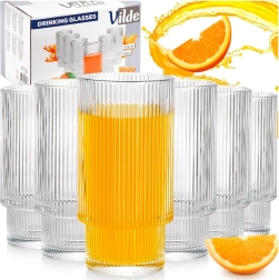 A Vilde pohárkészlet időtálló dizájnt kínál függőleges bordázással, amely nemcsak stílusos megjelenést ad, hanem kényelmes és biztonságos fogást is. Minden pohár 320 ml űrtartalmú, kb. 14 cm magas és 7 cm átmérőjű – ideális méret a mindennapi hideg italok szervírozásához.