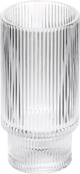Elegáns, hat darabból álló magas pohárkészlet 320 ml űrtartalommal, minőségi, bordázott üvegből. Biztos fogást, modern megjelenést és sokoldalú felhasználást kínál vízhez, limonádékhoz, gyümölcslevekhez, italokhoz és jeges teákhoz. Mosogatógépben mosható, ideális otthonra, étterembe és bárba is.