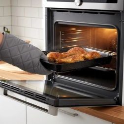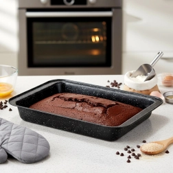 A egyenletes hőeloszlásnak köszönhetően a sült hús szaftos, a kéreg pedig ropogós lesz. A forma sokoldalú: alkalmas húsok, zöldségek, rakott ételek, piték és magasabb szélű házi pizza sütésére is. Sütés után könnyen elmosható – mosogatógépben mosható.