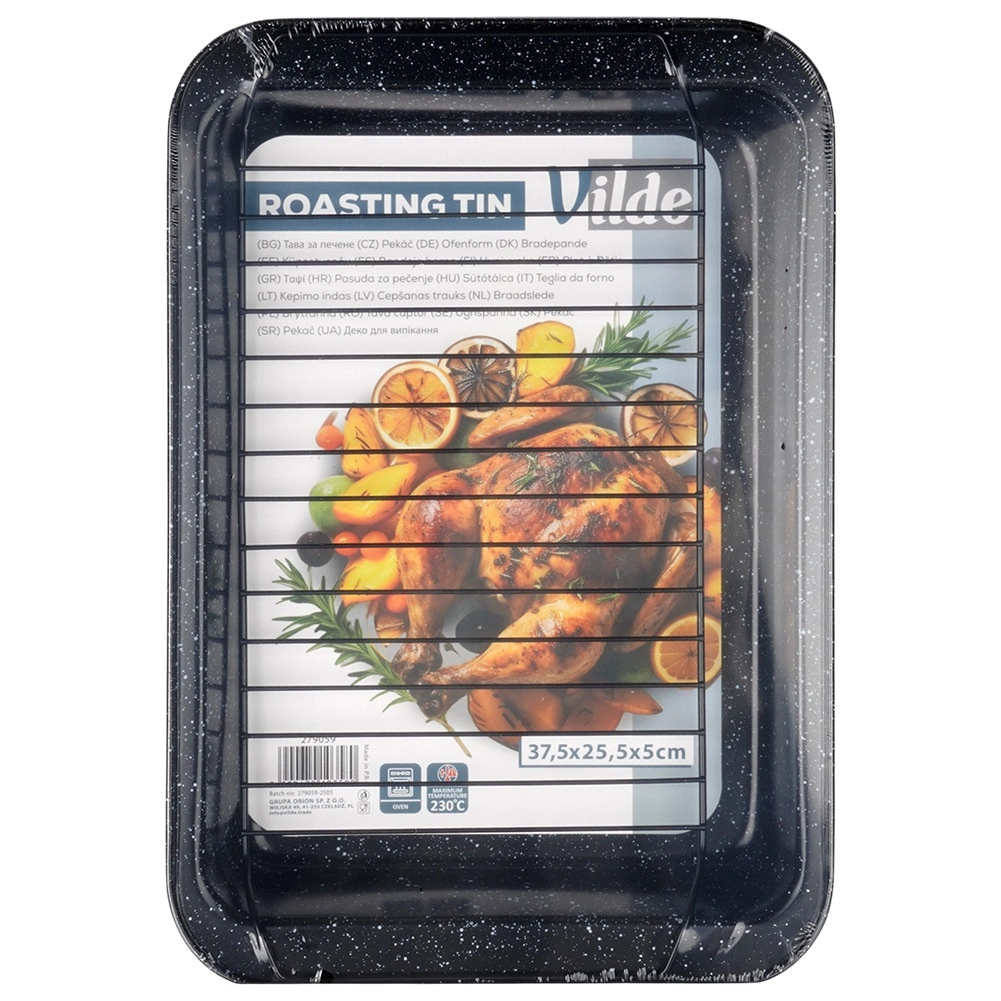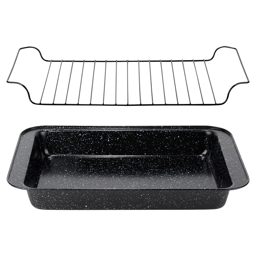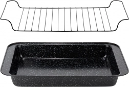 Praktikus, téglalap alakú tepsi kivehető ráccsal az ételek egyenletes sütéséhez húshoz, zöldséghez és desszertekhez is. Acél gránit tapadásmentes bevonattal a könnyű ételkioldásért és a gyors tisztításért. Magas hőmérséklettel szemben ellenálló (egészen 230 °C-ig), gáz- és elektromos sütőben, valamint mosogatógépben is használható.