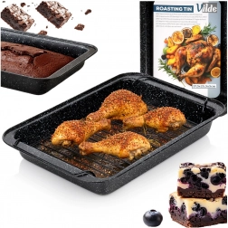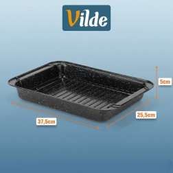 Minőségi acél a stabilitásért és az egyenletes hőeloszlásért. A 37,5 × 25,5 × 5 cm-es méret ideális húsok, szárnyasok és rakott ételek sütéséhez.